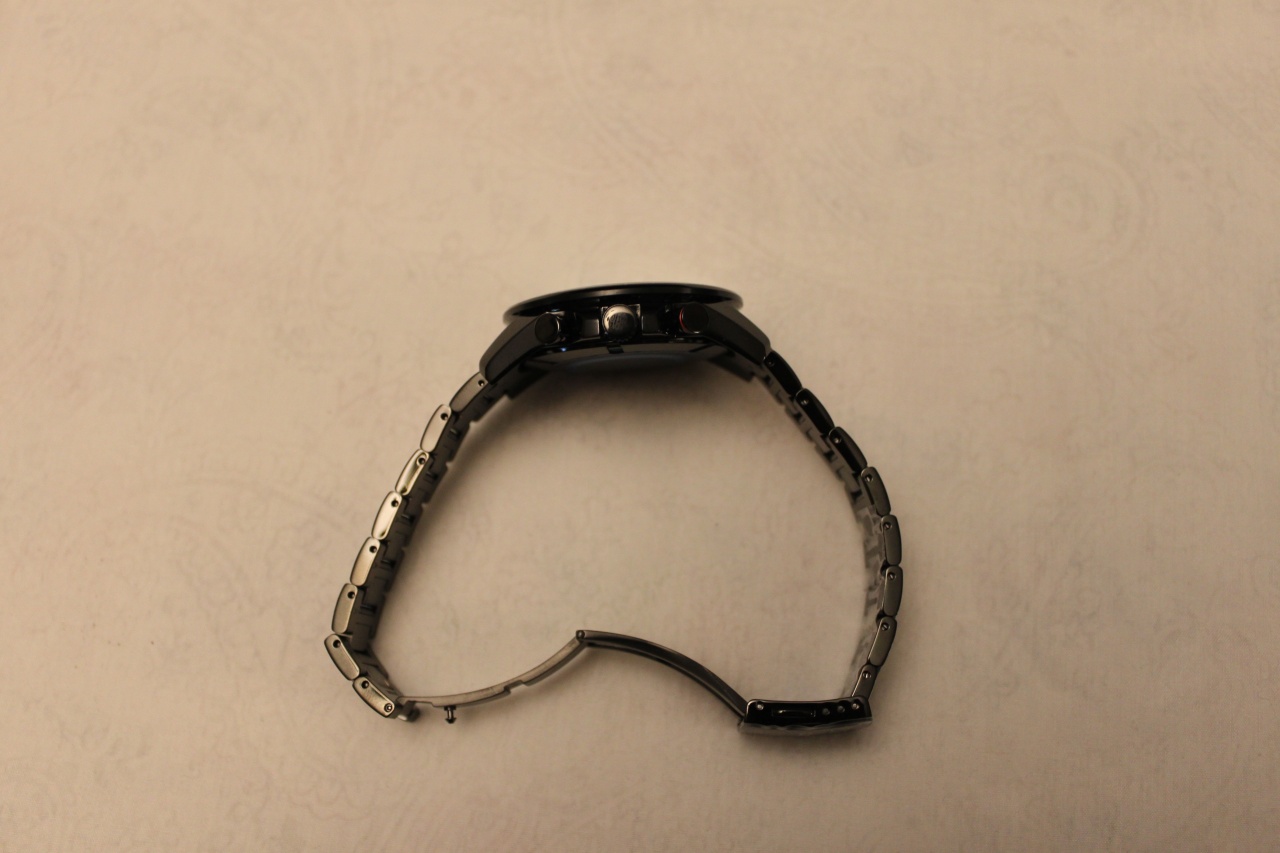 Корпус и браслет выполнены из нержавеющей стали с покрытием черного цвета.