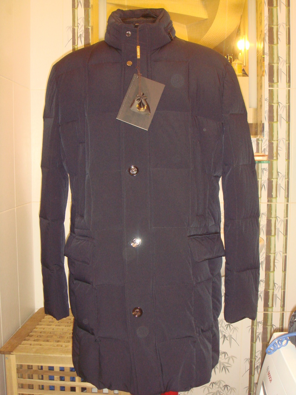 Продается новый стильный мужской зимний пуховик бренда MOORER превосходного исполнения, товар итальянского производства, синоним высокого качества и креативности, голограмма, глубокого темно-синего цвета, простеганный с двух сторон, воротник стойка, в котором скрыт капюшон, воротник с внутренней стороны отделан шерстяным трикотажем, застегивается на кнопки, однобортная модель, спереди застегивается на молнию, пуговицы с логотипом бренда, спереди карманы с клапанами, над ними два кармана на молнии, два боковых прорезных кармана, внутренние карманы на молнии, пуговицах, внутри 100% гусиный пух, состав: 88% полиамид, 12% полиуретан, все бирки прилагаются , гарантированный 100% оригинал, размер 56(IT) производство Италия