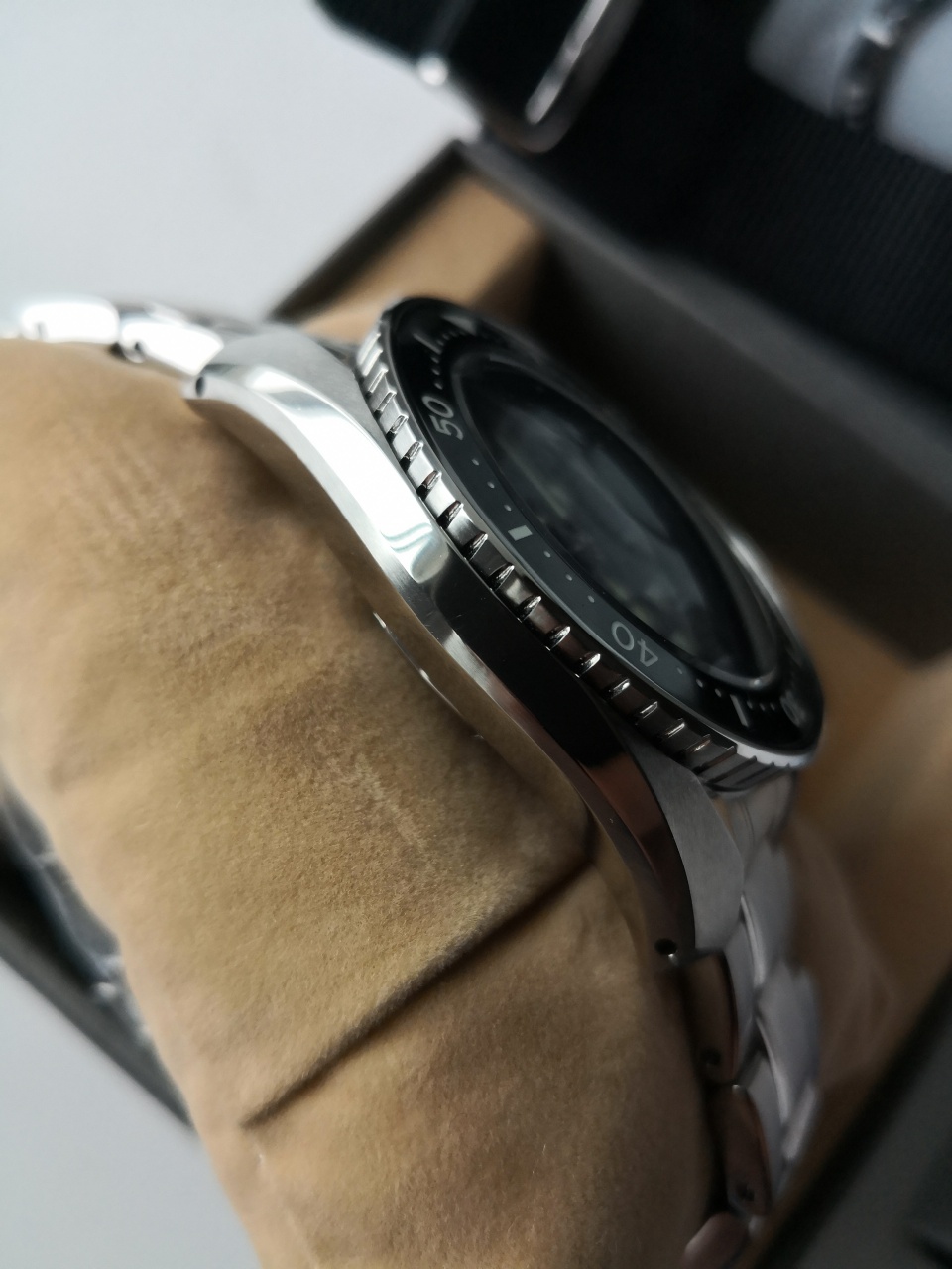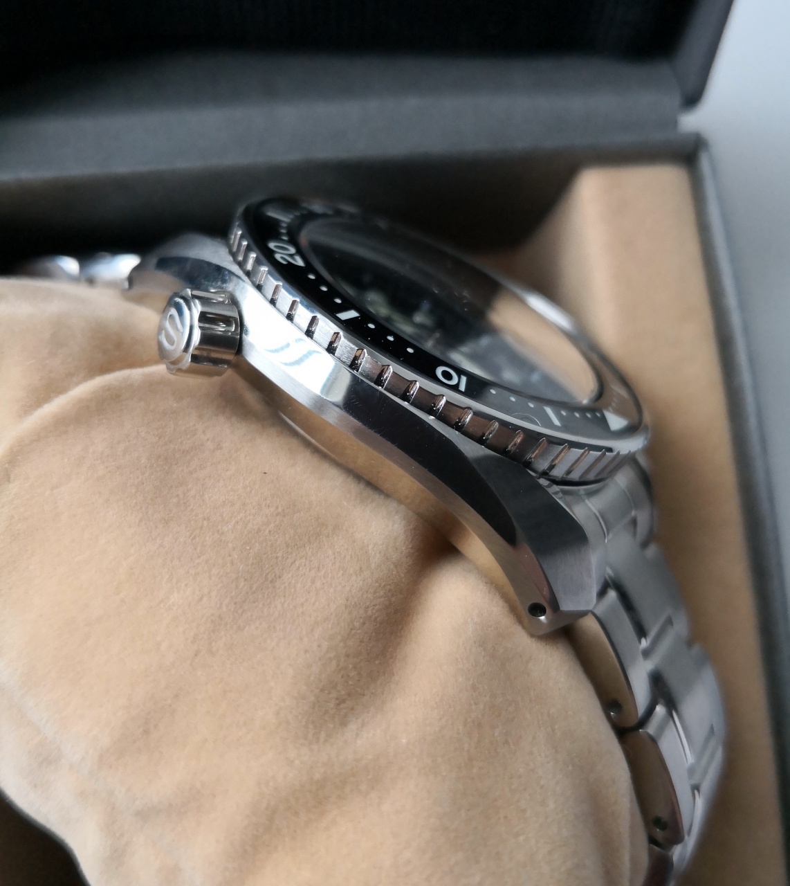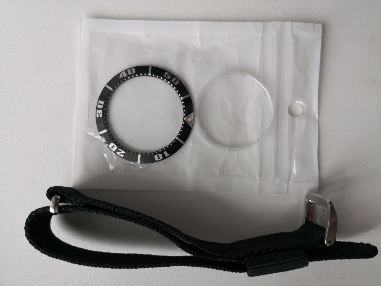 Установлено вдвояковыпуклое сапфировое стекло с синим антибликом (от DLW), керамический безель с люмом высоченного качества (от американского производителя L.S.B.l.). Родной безель, родное минеральное стекло - в комплекте. Браслет абсолютно новый (в пленках). Корпус, считаю практически в идеальном состоянии. В комплекте отличного качества натовкий страп.