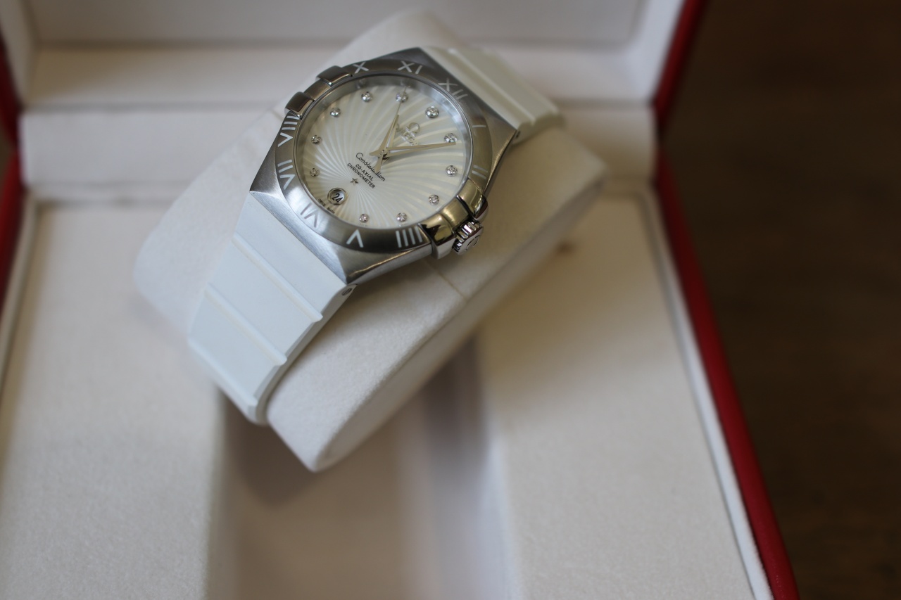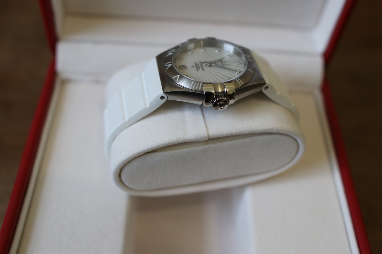 Женская!!! Omega Constellation Co-Axial ( Белый каучук, Жемчуг, Бриллианты )