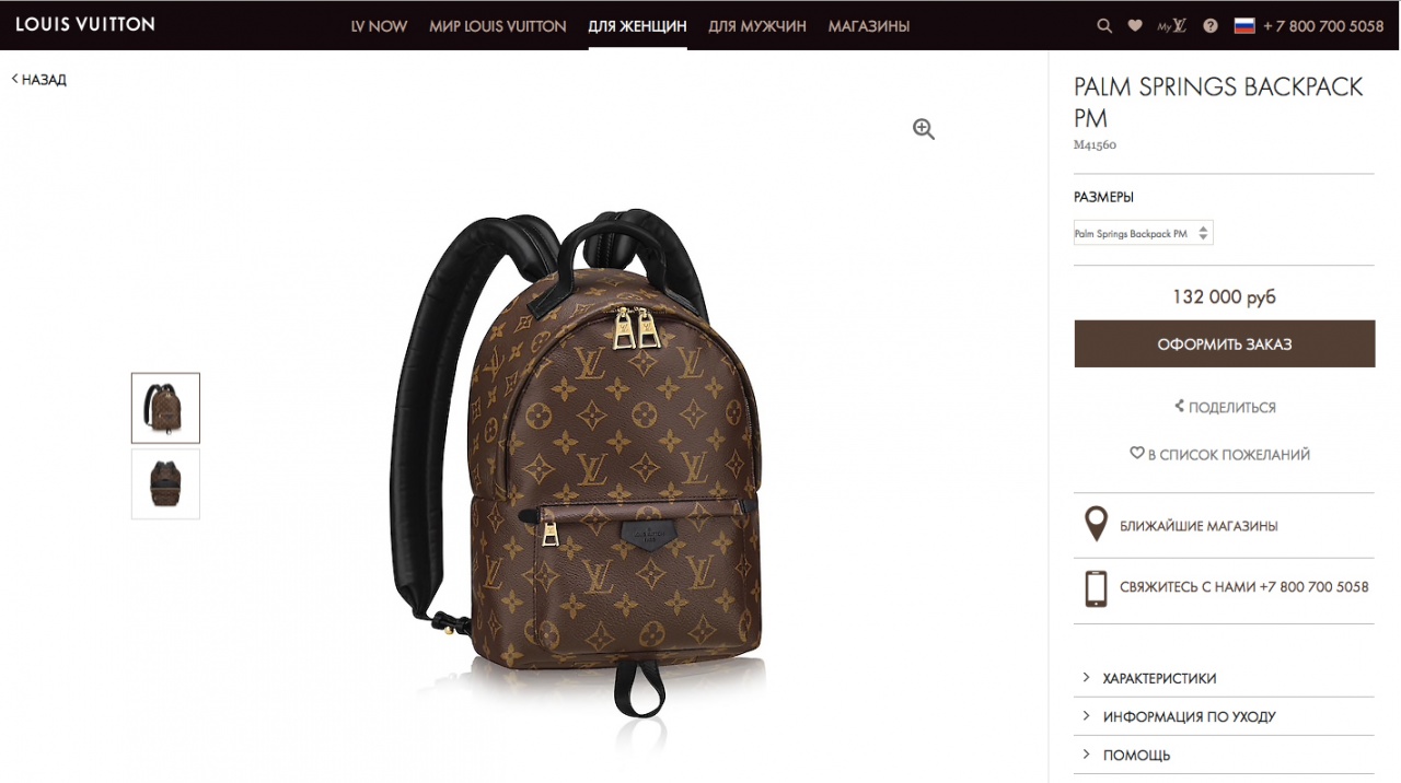 Редкость! Нет в свободной продаже! Louis Vuitton осваивает методику давно известную таким брендам как Rolex, Patek Philippe, Hermes и т.п. - а именно создание искусственного дефицита на некоторые особенно востребованные модели. Эти рюкзачки Palm Springs сейчас невероятно популярны, и продажи их теперь специально очень ограничены. В российские бутики их привозят всего по несколько штук в месяц и встретить их в продаже фактически нереально. Продажи оформляются под заказ через лист ожидания, срок от нескольких месяцев до года.