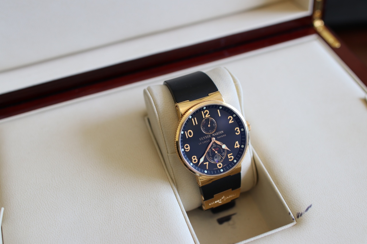 Ulysse Nardin Maxi Marine Chronometer 41 ( Розовое золото , Каучук , Арабские цифры )