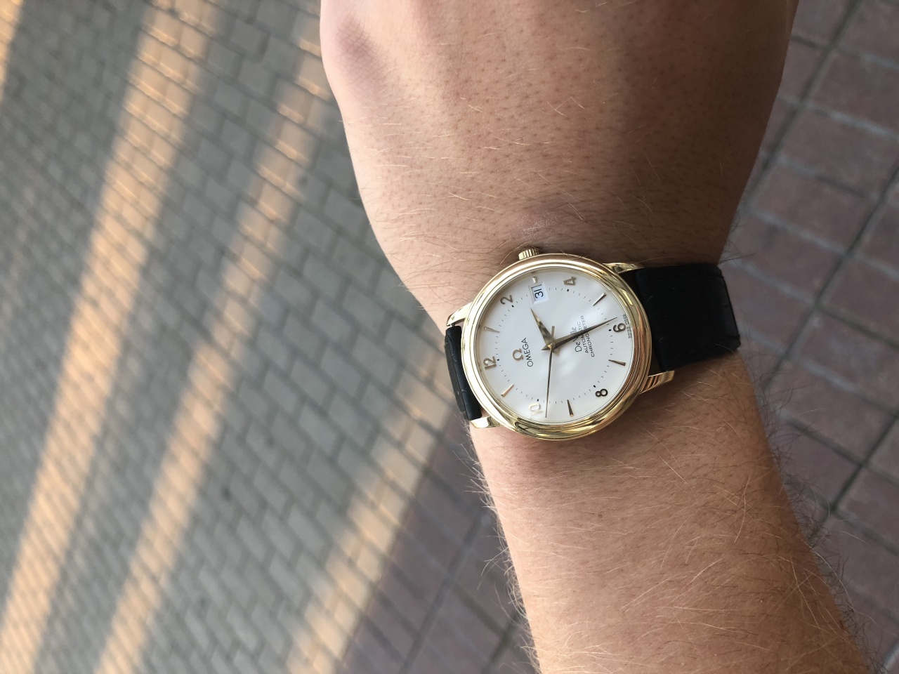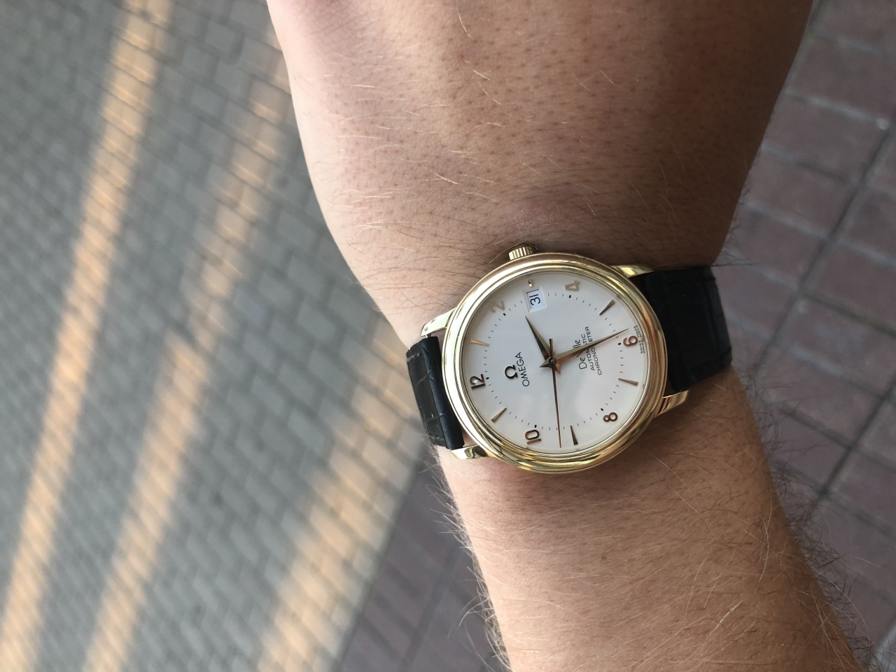 Прекрасная костюмная Omega! Полный комплект документов и коробка! После полировки и ТО! Оригинальный ремень редко одевался , но потемнел от времени!