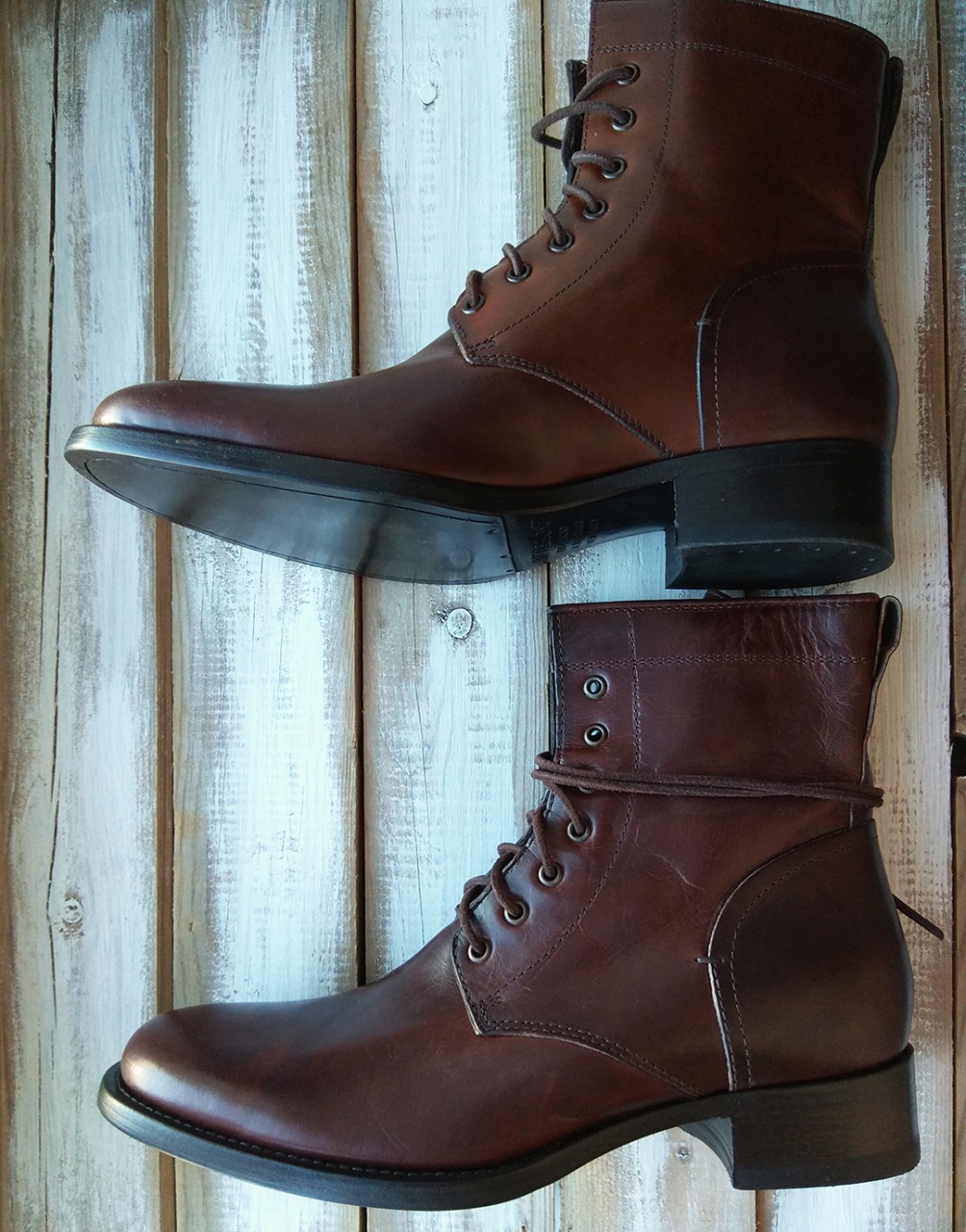 На подошве стоит заводская гладкая резиновая профилактика. Если планируется носка зимой, то рекомендую поверх накатить рельефный Vibram в любой хорошей мастерской для лучшего сцепления.