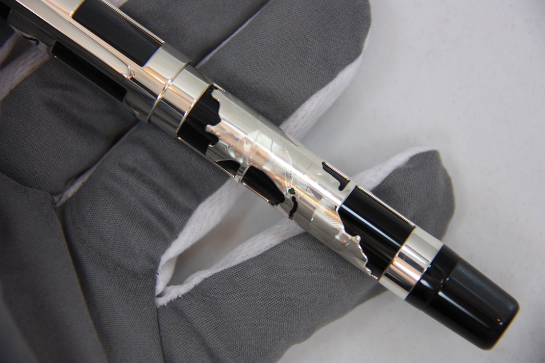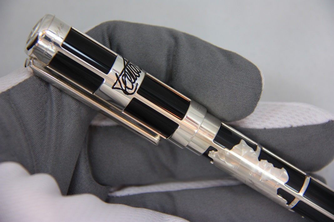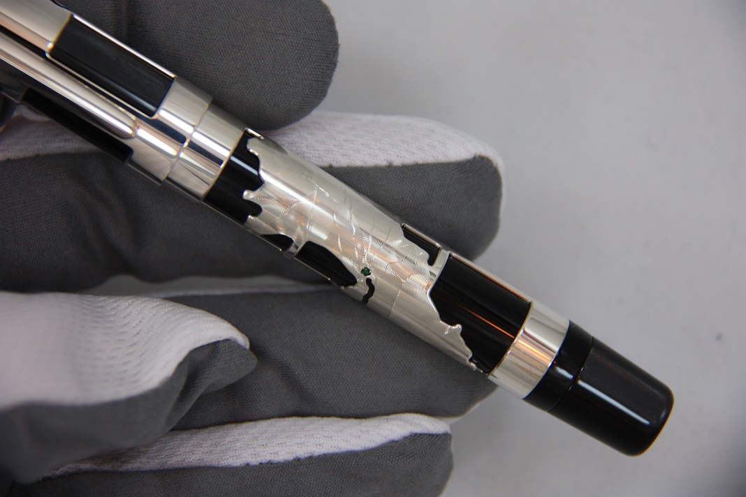 Выпуск ограниченной серии Paulo Coelho - это дань таланту и артистизму великого писателя. В память о дате его рождения (24 августа 1947 года) было изготовлено 1947 ручек. Это 1000 серебряных перьевых ручек, 900 серебряных роллеров декорированных изумрудами и 47 перьевых ручек из желтого золота с изумрудами и бриллиантами. Корпус и колпачок каждой ручки из этой ограниченной серии изделий изготовлены с применением техники ажурной гравировки по металлу. Эта техника позволяет подчеркнуть контраст между жемчужно-черной смолой и сверкающим драгоценным металлом. Декорированные гравировкой в виде бабочки, которая является еще одним символом пристрастий писателя, перья серебряных ручек изготовлены из белого золота 18К, а перья золотых ручек - из желтого золота 18К. Декор корпуса ручек - это напоминание о паломничестве Пауло Коэльо в Сантьяго де Компостела. На серебряных ручках маршрут паломничества проложен дорогим черным лаком, а на золотых - бриллиантами. В верхней части ручки рядом с логотипом компании Montegrappa можно видеть изображение компаса, напоминающего об артистическом символизме Коэльо. Колпачок украшает автограф писателя, а зажим - изображение шпаги как напоминание о его книге 'Паломничество', которая по праву считается настоящим литературным шедевром.