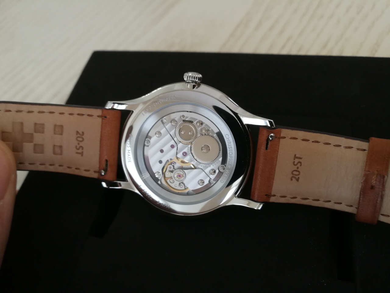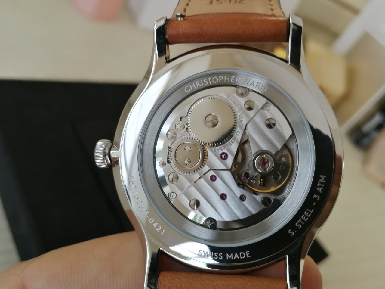 Механизм красиво декорирован женевскими волнами, высота всего 2,2 мм).