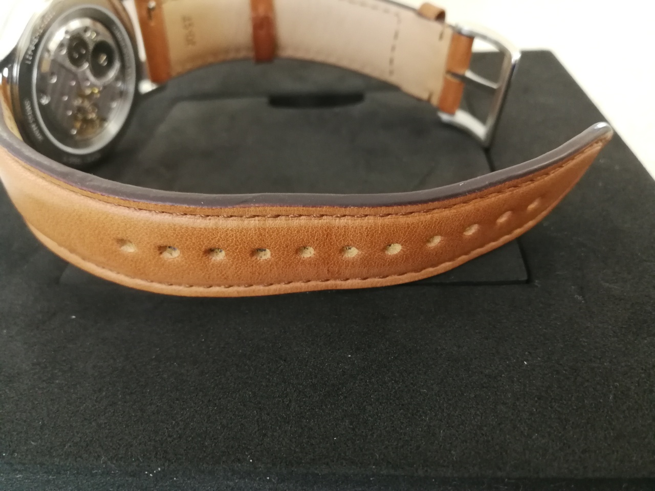 Ни на корпусе, ни на стекле следов ношения нет. Часы на родном красивом кожаном ремне также практически без следов ношения (см. фото).