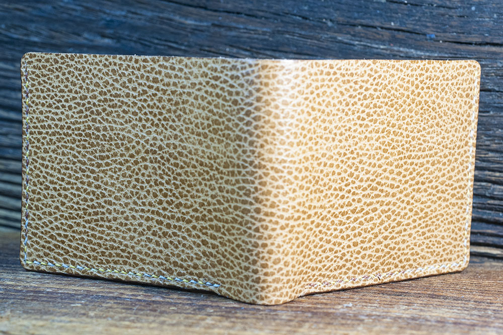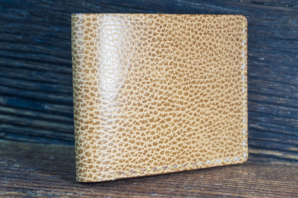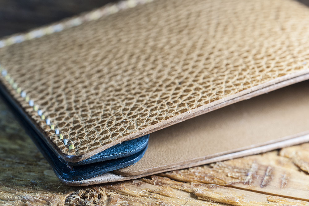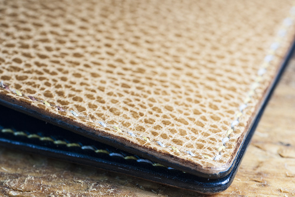 Кошелек прошит полностью вручную с использованием шила для создания особого шва.