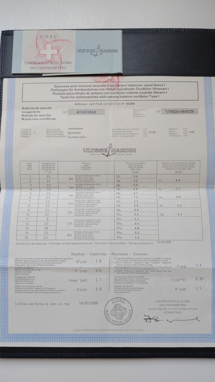 Документы: Сертификат подлинности механизма хронометра (COSС)!