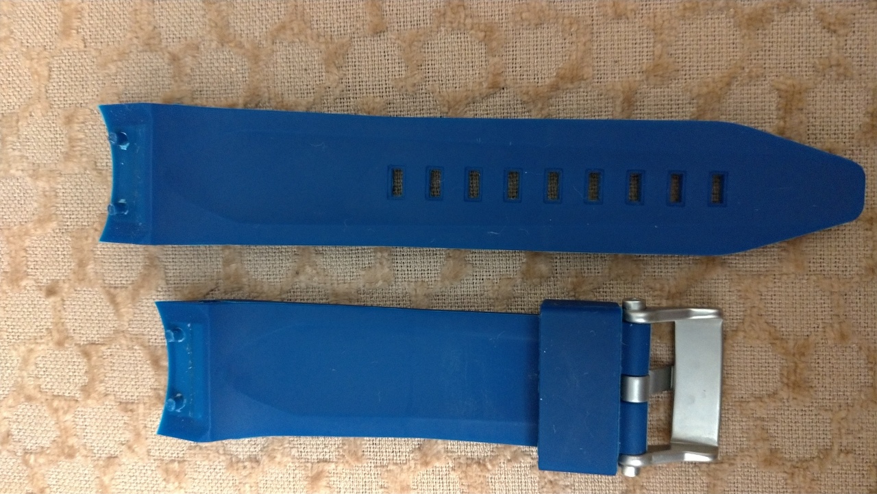 Часы в идеальном состоянии! Ремни также. Только на черном ремне расширено одно отверстие. Зато в комплекте отдам еще и оригинальный кожаный ремень коричневого цвета. Каучук и коричневый ремень одевались пару раз. В основном носились на родном черном ремне, но и его состояние практически идеальное.
