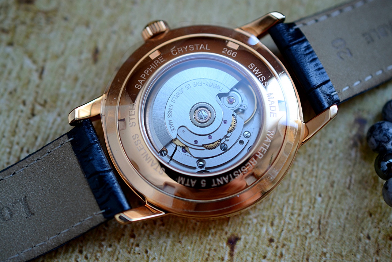 Корпус часов из ювелирной, полированной стали с золотым PVD покрытием. Диаметр корпуса - 40мм.