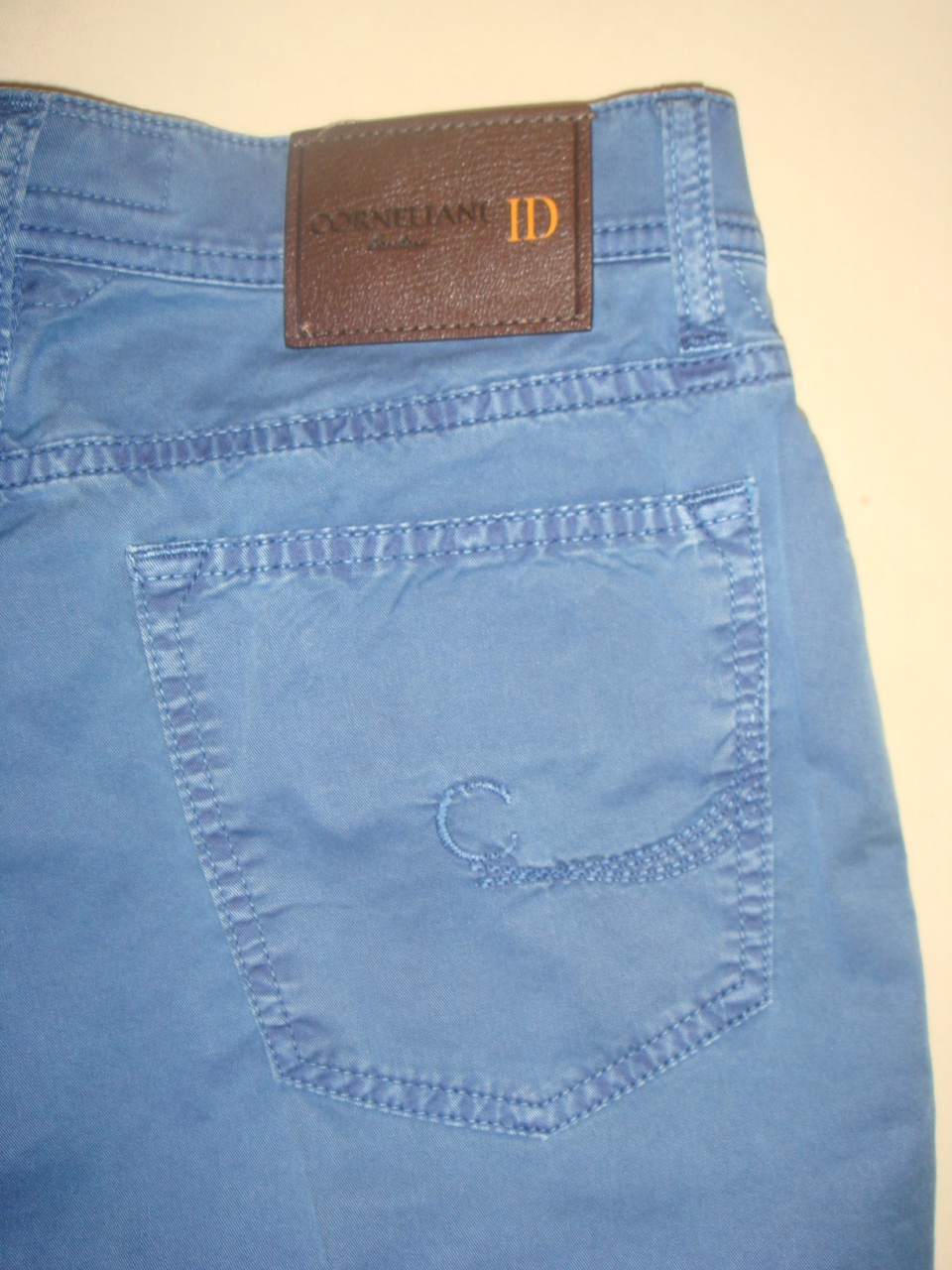 Продаются новые летние мужские джинсы бренда CORNELIANI ID, превосходного исполнения, luxury деним ярко-синего цвета, логотип, оригинальная отделка шлевок, карманов, гульфика и пояса, ,прямой крой брючин, пуговицы, множество карманов, состав: 100% хлопок, все бирки и запасная фурнитура прилагаются , гарантированный оригинал, размер 32, производство Италия Бренд по достоинству оценят любители одежды класса де люкс, изделие смотрится дорого и стильно, отличное сочетание цена-качество Возможна доставка почтой EMS, СДЭК, дополнительные фотографии по запросу