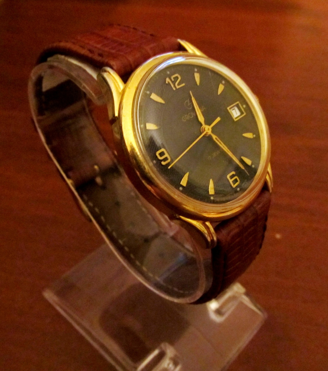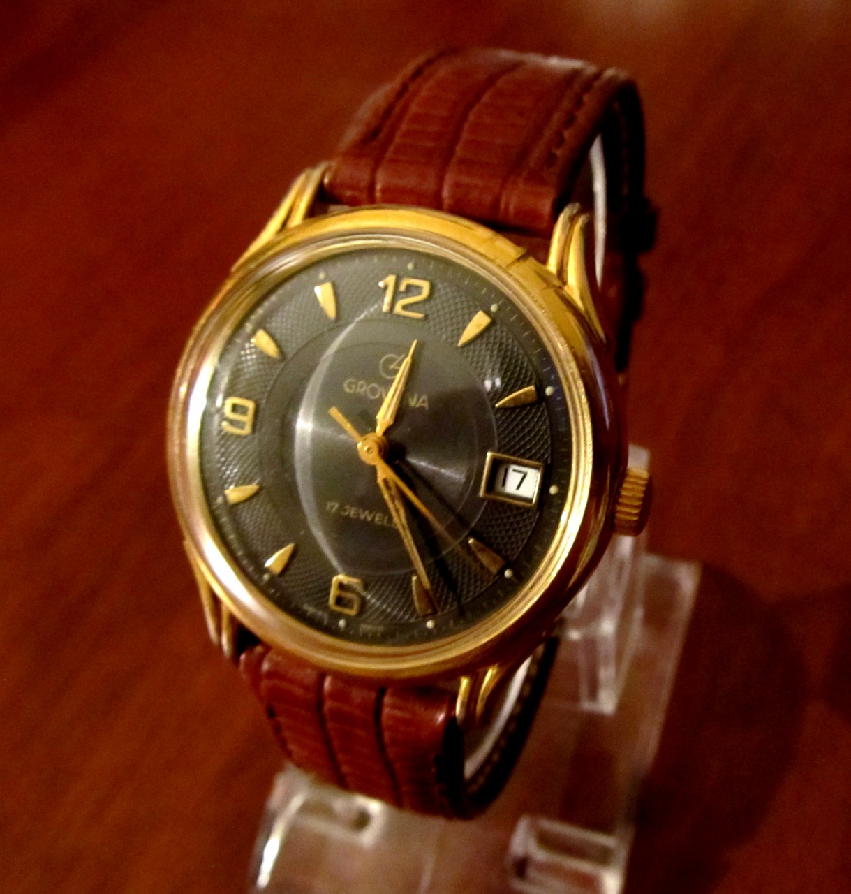 Оригинальные швейцарские часы "Grovana" в великолепном рабочем и косметическом состоянии. Корпус в позолоте. Красивый циферблат с контрастными стрелками. Классический, неизменный многие годы дизайн швейцарских часов высокой ценовой категории. Часы обслужены; почищены, смазаны и отрегулированы по ходу в сервисной мастерской. Механизм отлично работает. Новое стекло. Новый ремень из натуральной кожи рептилии.