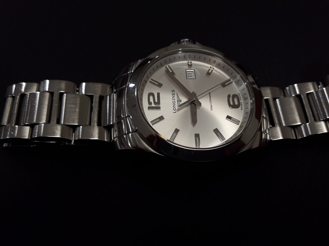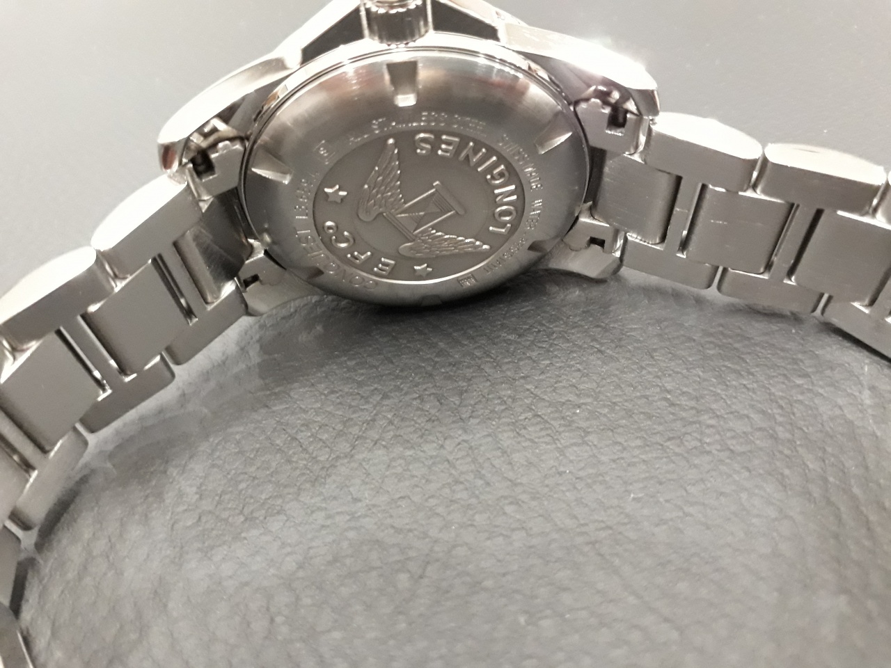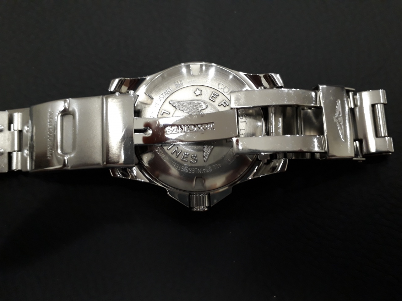 - Браслет установлен от Longines Hydroconquest (оригинальный) и разница у них только в замке - у Conquest(который был в заводской комплектации часов) с кнопками, у Hydroconquest(который установлен сейчас) раскладной с удлинителем для гидрокостюма