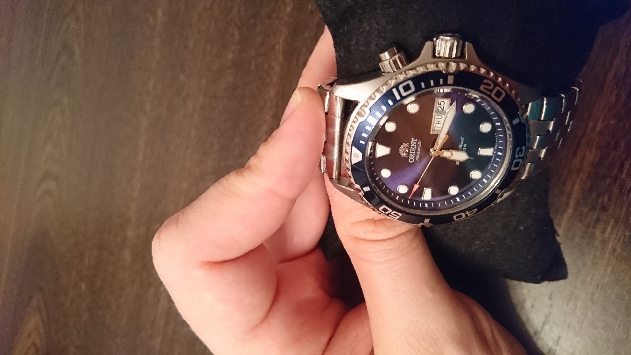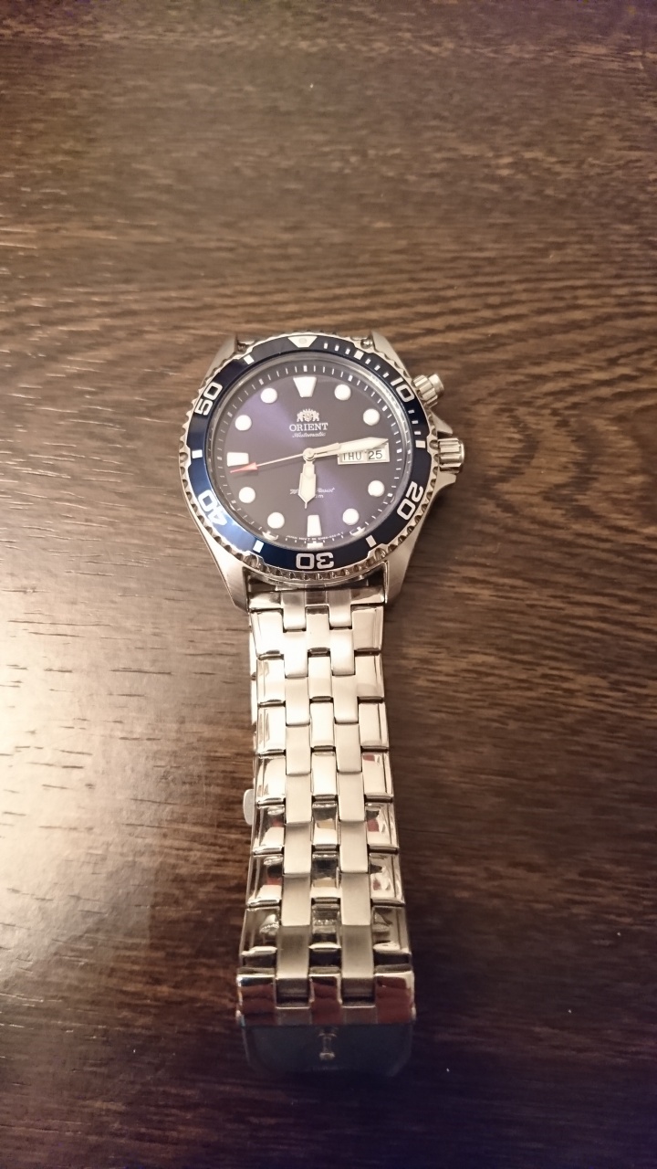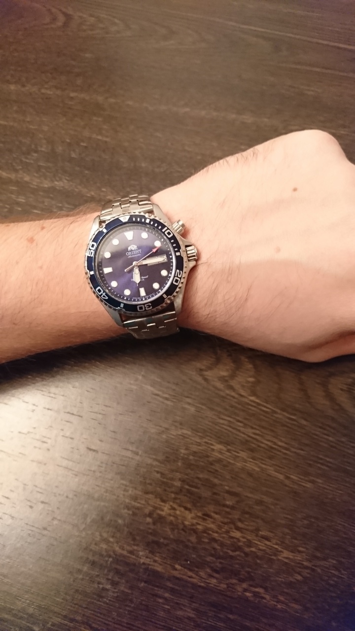 И так продам свои шикарные Ориенты Рэй первой версии с синим лицом, накладными метками и тд и тп. Мех ЕМ65, люм живой, стекло в идеале, шпильки стоят толстые на креплениях. По состоянию есть следы бережной носки, но рядом с 12 часами на безеле есть пара царапок не глубоких и видных под углом на солнце, при условии если знать куда смотреть (на фото видно при большом приближении).