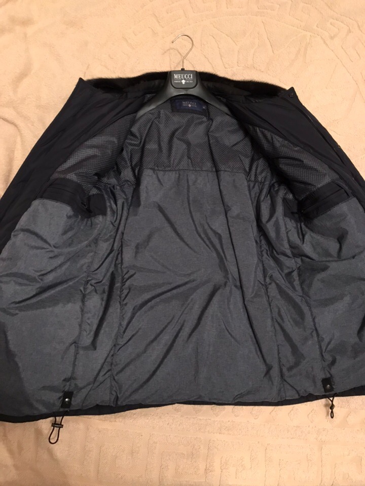 Пуховик Meucci, 48 размер, я думаю пойдёт и на 50ый. Надет 2 раза (состояние новой вещи), был куплен как теплый пуховик для командировки в Сибирь под костюм. Оказался очень теплым, но в Москве я чаще хожу не в классике. В связи с этим хочу приобрести другую более спортивную модель.