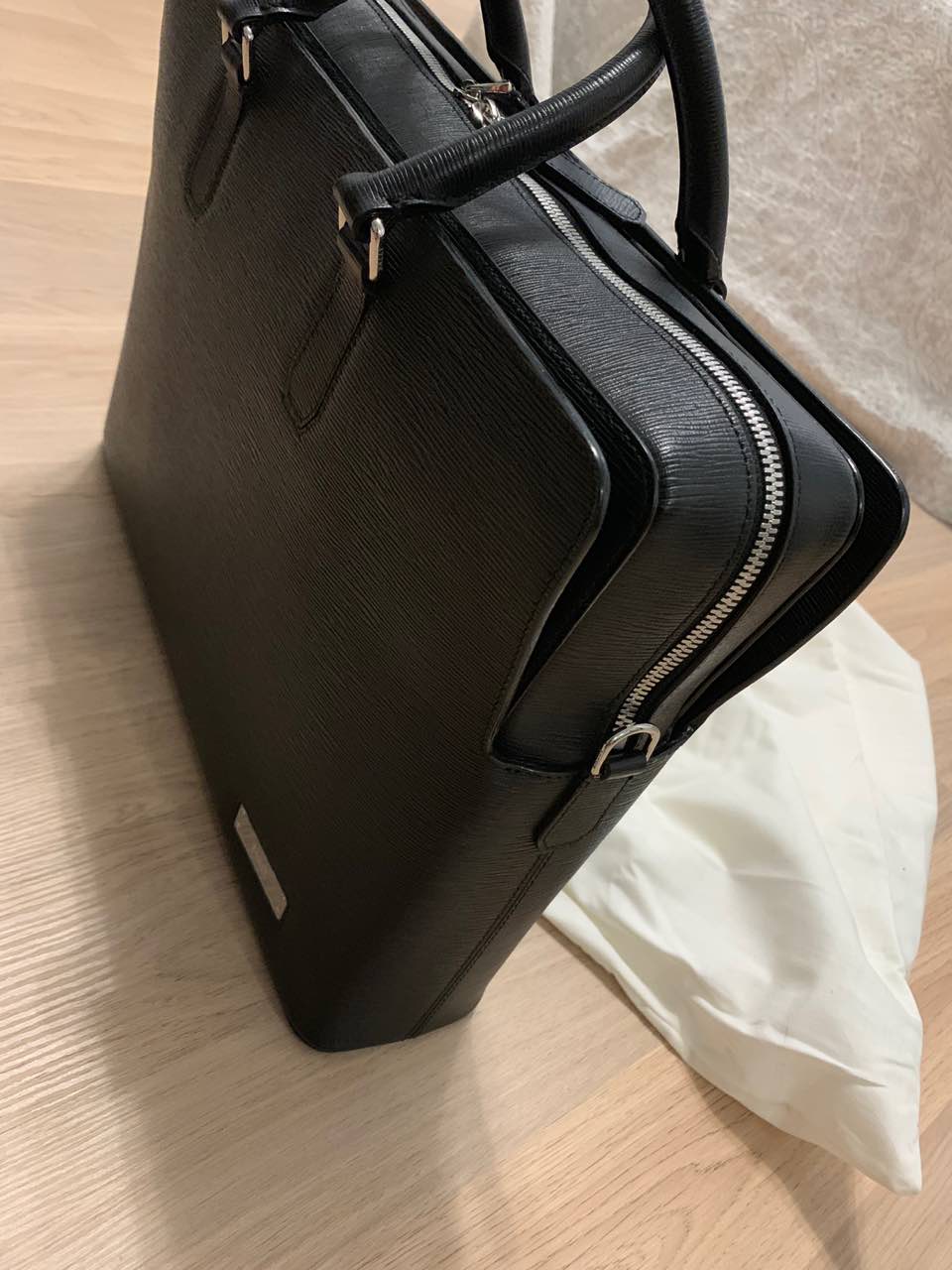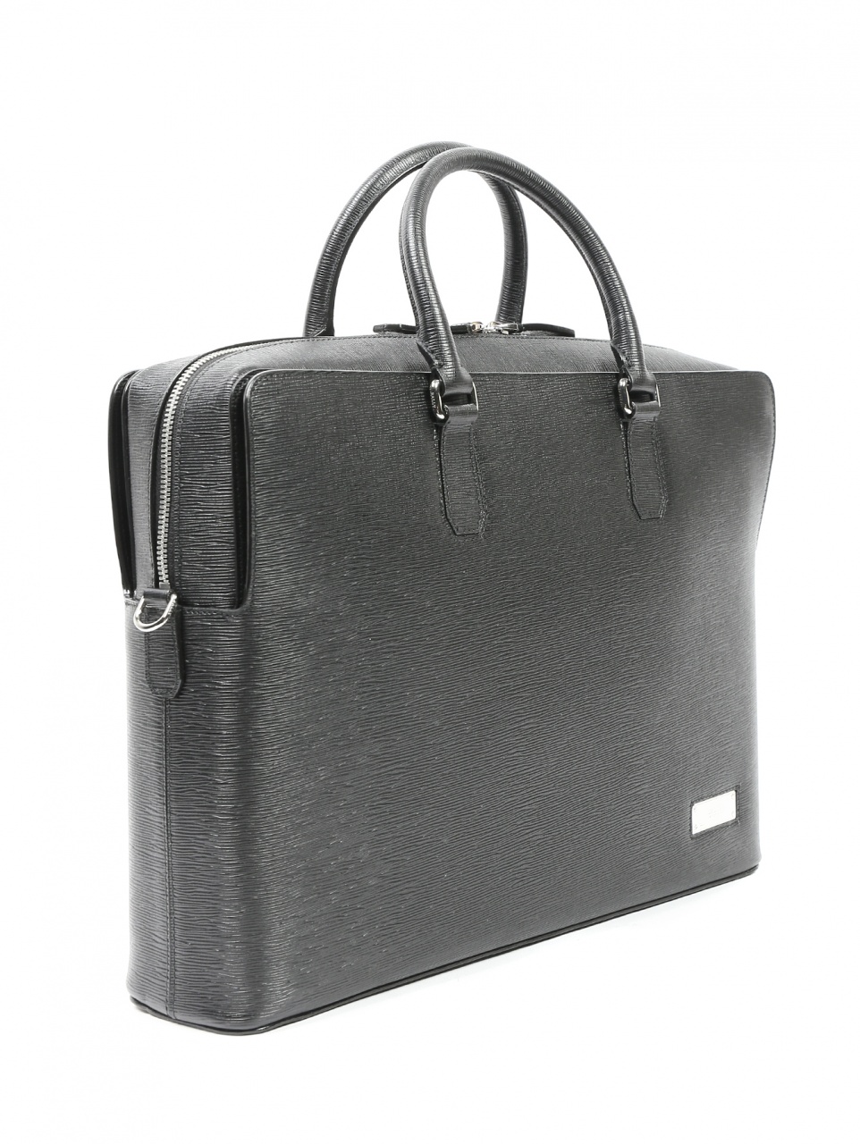 Черный кожаный прямоугольный портфель строгого дизайна из коллекции Bally оценят деловые люди. Этот аксессуар на «молнии» дополнен двумя короткими ручками и максимально удобен для переноски документов или ноутбука. Отличный выбор для тех, кто работает в офисе.