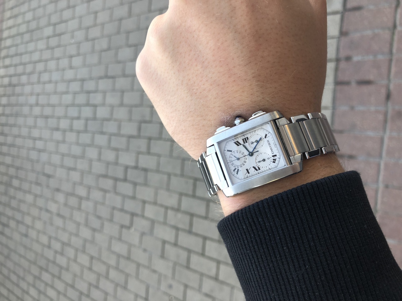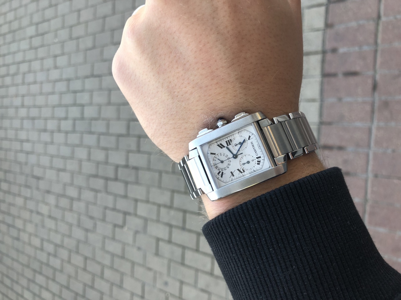 Прекрасный костюмный Cartier! Браслет достаточно длинный ! Стекло без сколов и царапин! Шикарный размер! В живую действительно не маленькие часы! Все функции исправны!
