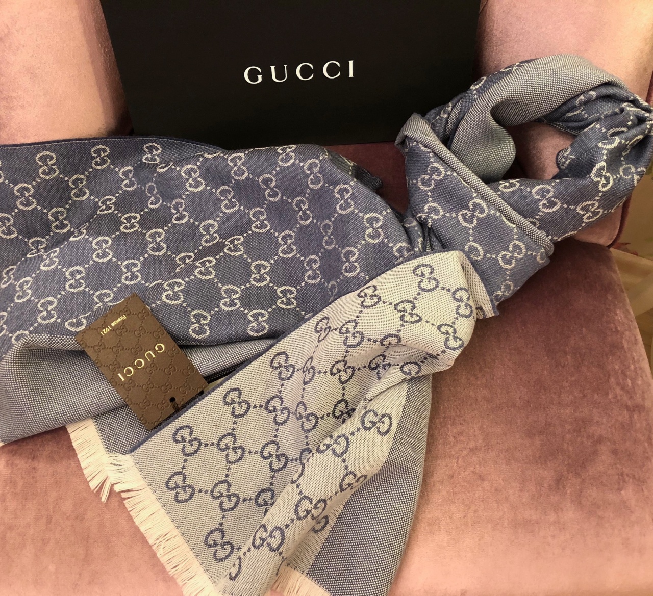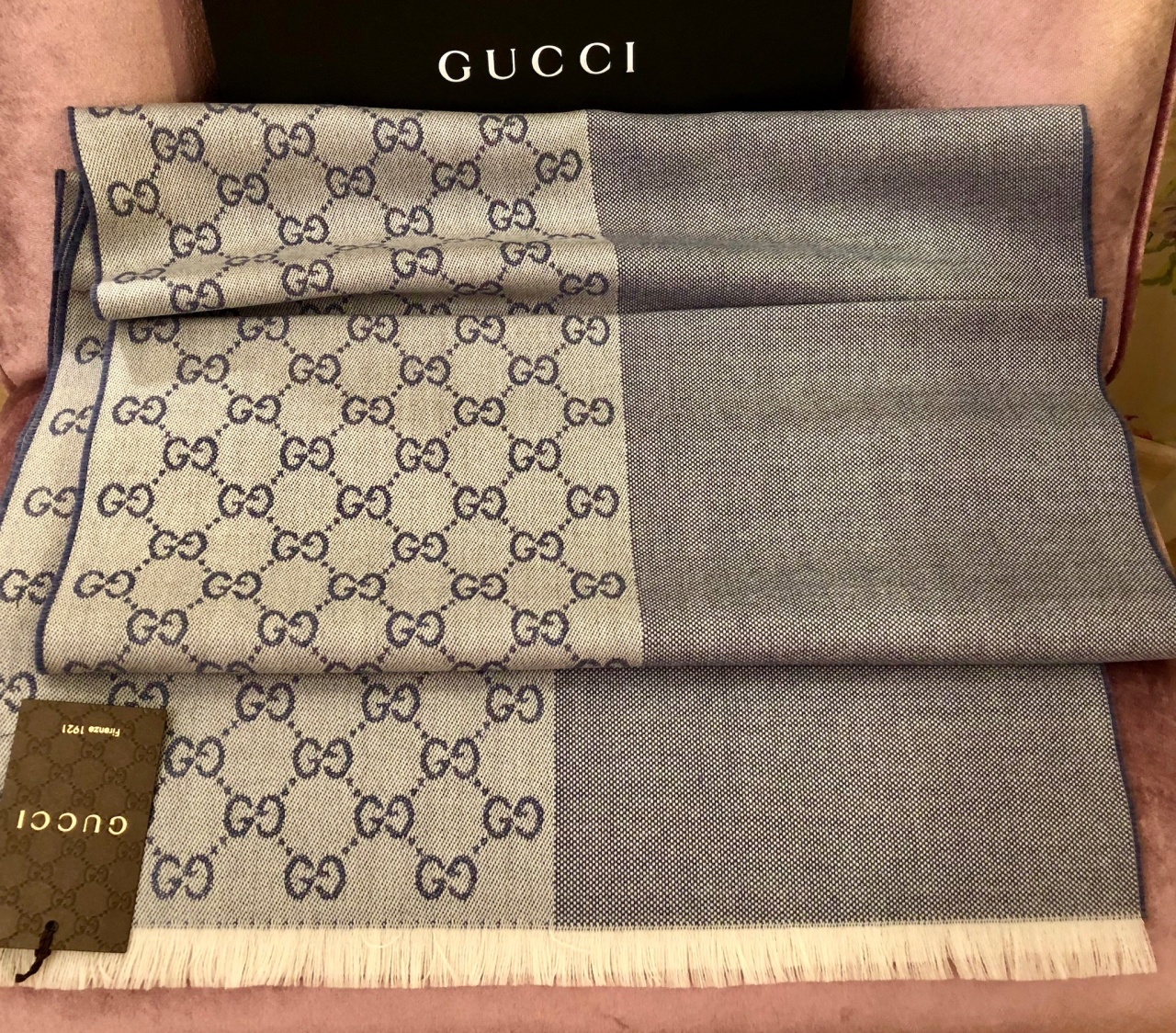 Шарф GUCCI из 100% шерсти. Новый. Рисунок Supreme GG. Цвет светло серо-голубой - Часовой форум Watch.ru