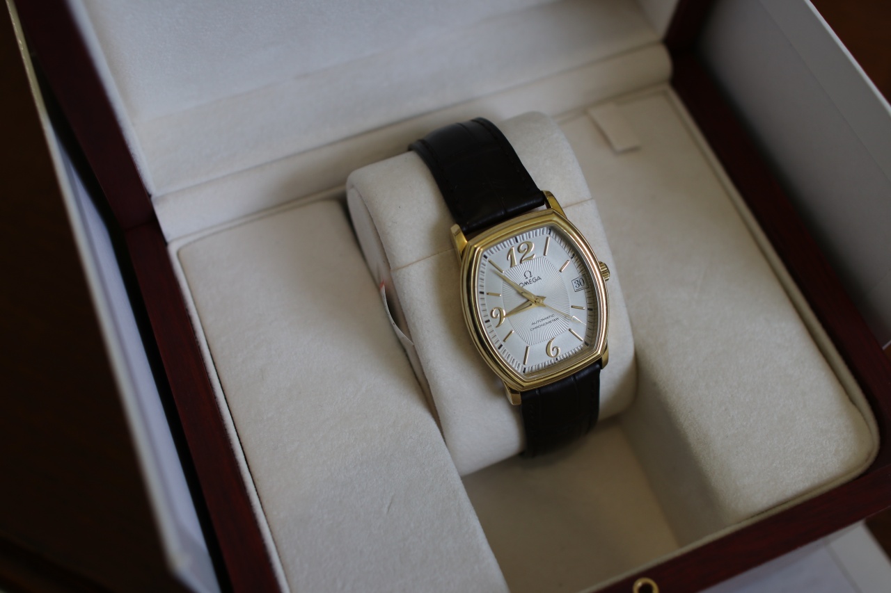 Omega De Ville Tonneau ( Комплект , Желтое золото , Серебристыйциферблат )