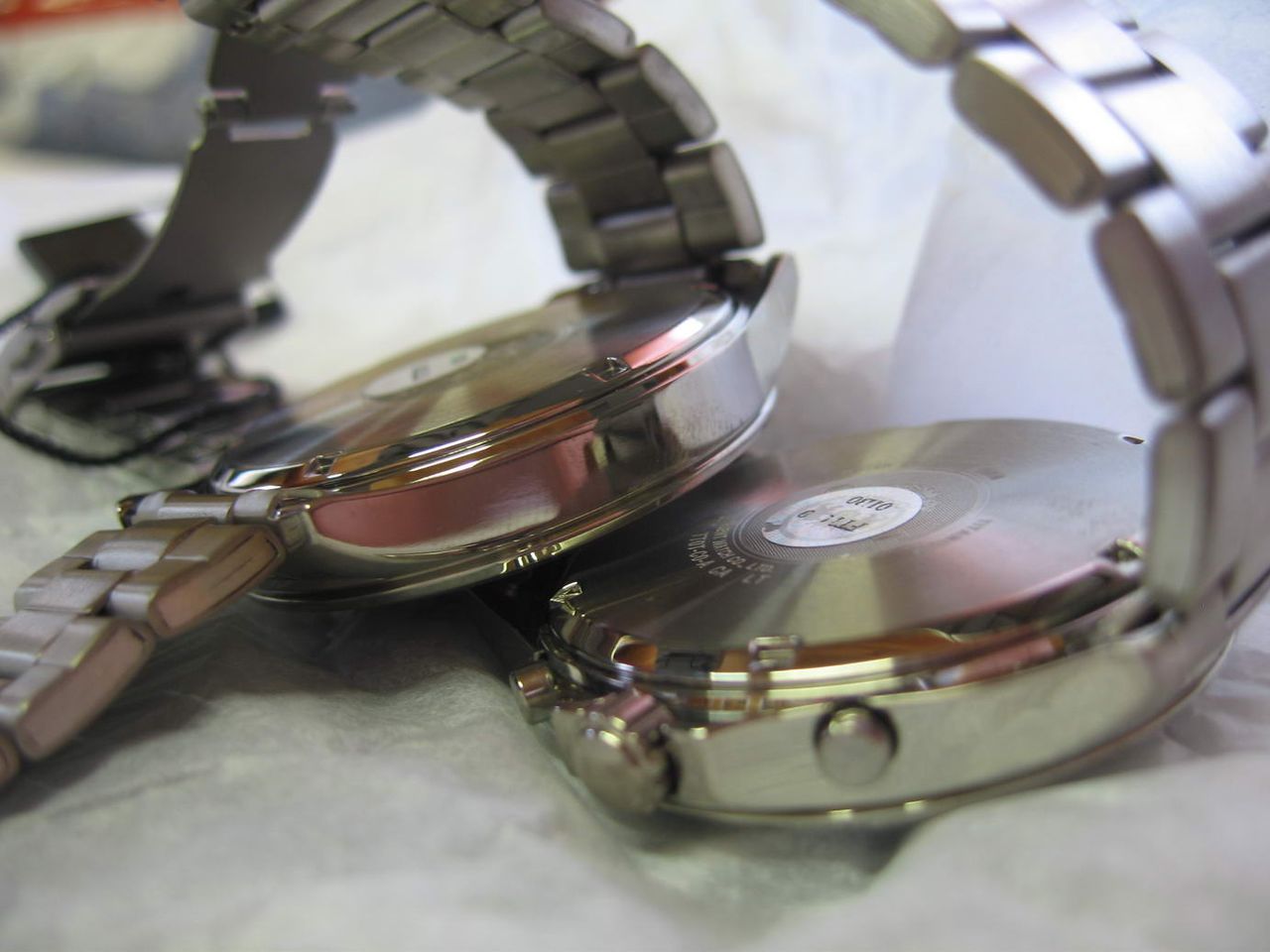 Но у сплава есть и минусы - это его непластичность, и непрактичность. Первый минус - непластичность, объясняется очень просто, титановый сплав нельзя согнуть. Т.е. если на обычном стальном браслете подогнуть язычок замка, то 316 сталь подобную операцию перенесет нормально, а вот титановую деталь нельзя согнуть, а можно только сломать. Т.к. титановые детали не гнут, их выплавляют. Непрактичность же заключается в царапинах после носки. Поскольку это титановый сплав, на поверхности сплава образуется пленка, которая не дает титану поддаваться коррозийному процессу. Эта пленка весьма чувствительна к трению, и обычно титановые часы со временем покрываются сетью микроцарапинок. Также, если часы были в процессе производства отполированы, т.е. детали имеют зеркальный блеск, и они покрылись царапинами, в дальнейшем их нельзя будет отполировать. Полировка при производстве часов - это сложный электрохимический процесс, который недостижим в обычных условиях.