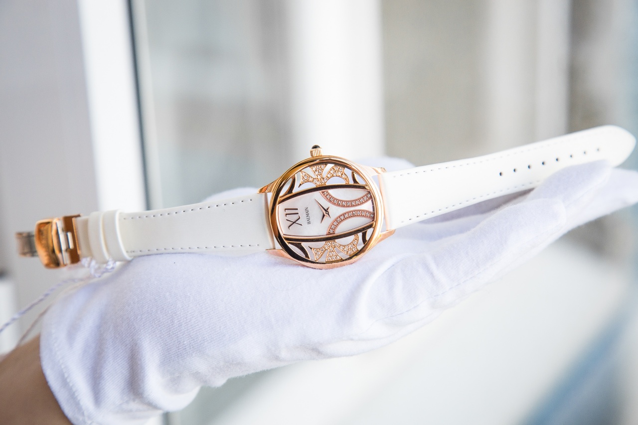 Сочетание перламутрового циферблата, бриллиантовой россыпи и восхитительного орнамента Арабески, превращает этот аксессуар в вашу мечту.