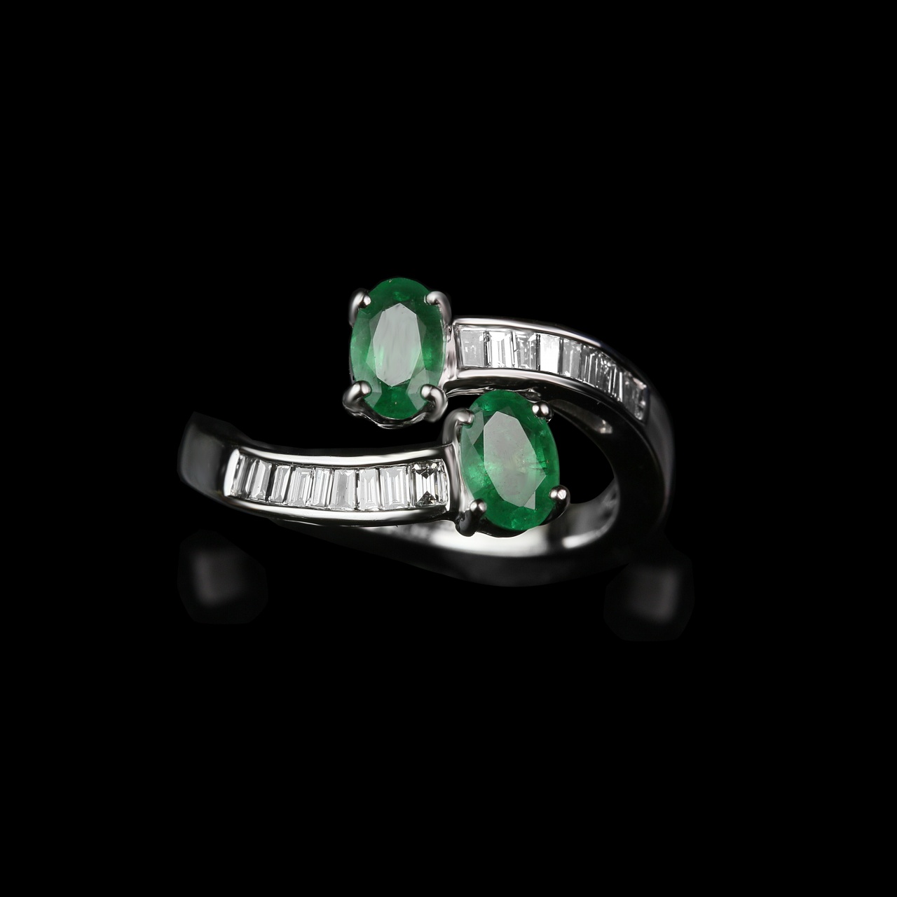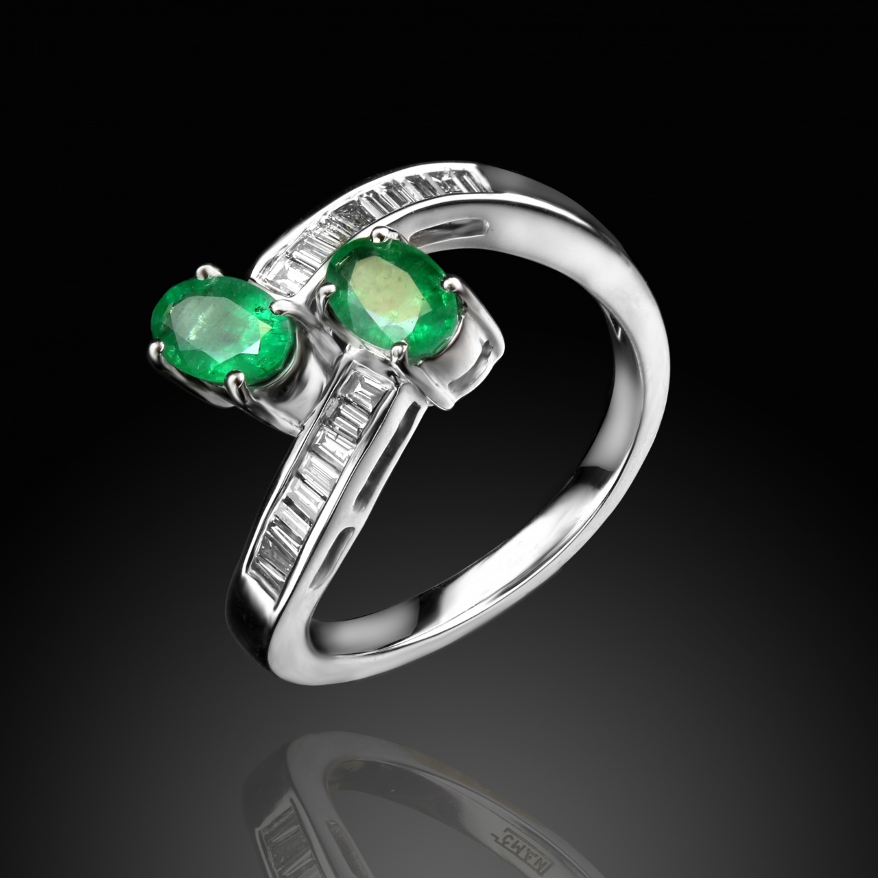 Кольцо из белого золота с изумрудами 1 карат и бриллиантами 0,5 карат