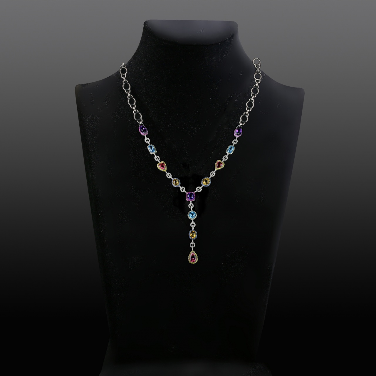 Ожерелье с цветными камнями общим весом 18,48 карат и бриллиантами общим весом 1,1 карат