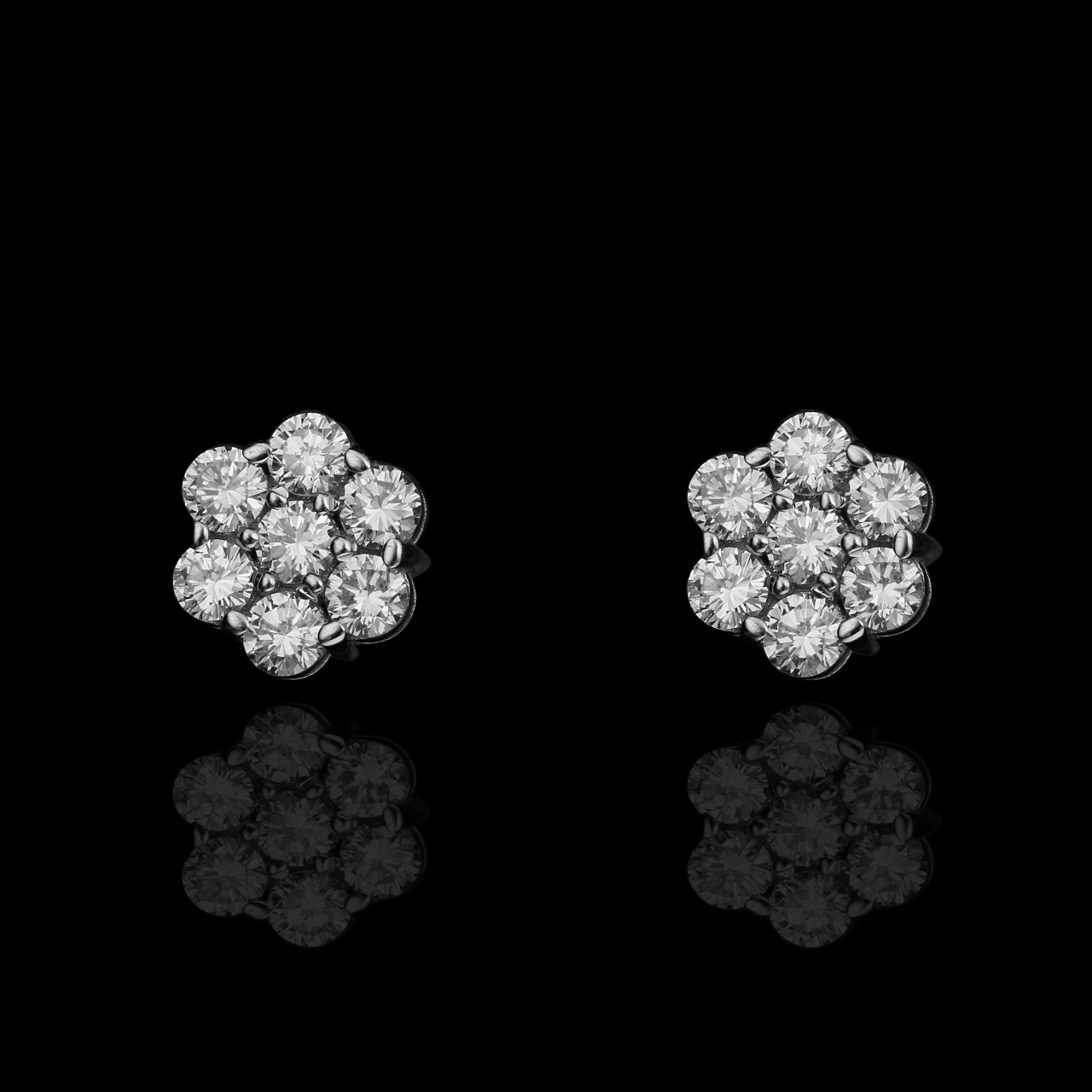 Серьги-пуссеты из белого золота с бриллиантами 1,4 карат (сертификат МГЦ)