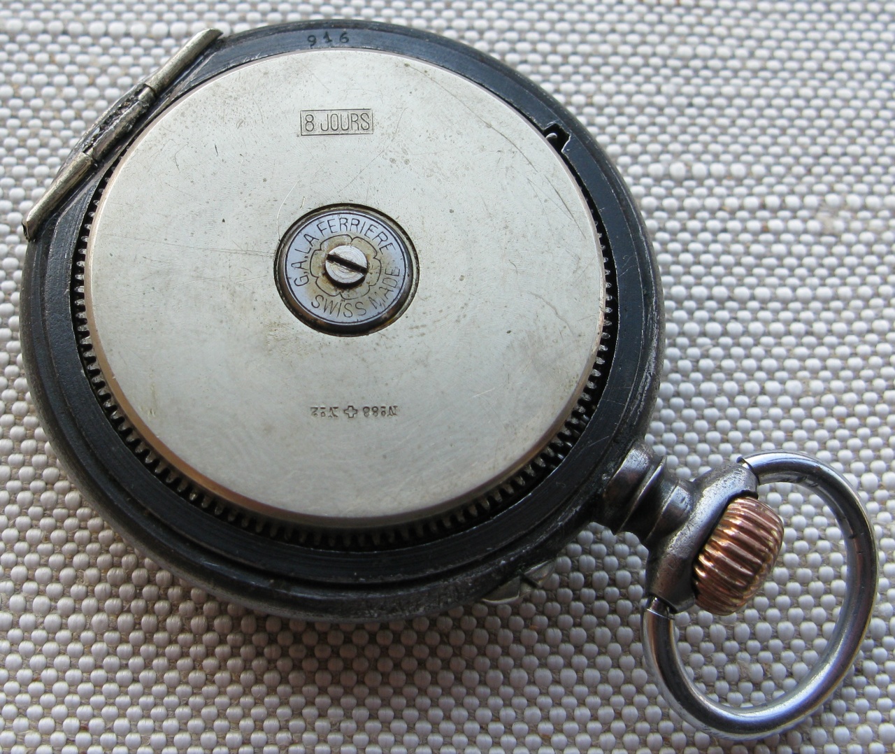 Карманные часы, 8 дневный завод, черная оружейная сталь, Швейцария, 49.3мм. Требуется реставрация кр