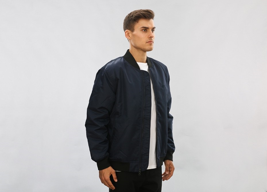 В качестве материала используется прочный ветрозащитный и водозащитный нейлон Flight Satin. Свободный крой. Два кармана по бокам и внутренний карман. Застежка на молнии. Эластичные ворот, манжеты и подол. Подкладка 100% хлопок. Цвет Navy (темно синий). Сезон весна-осень.