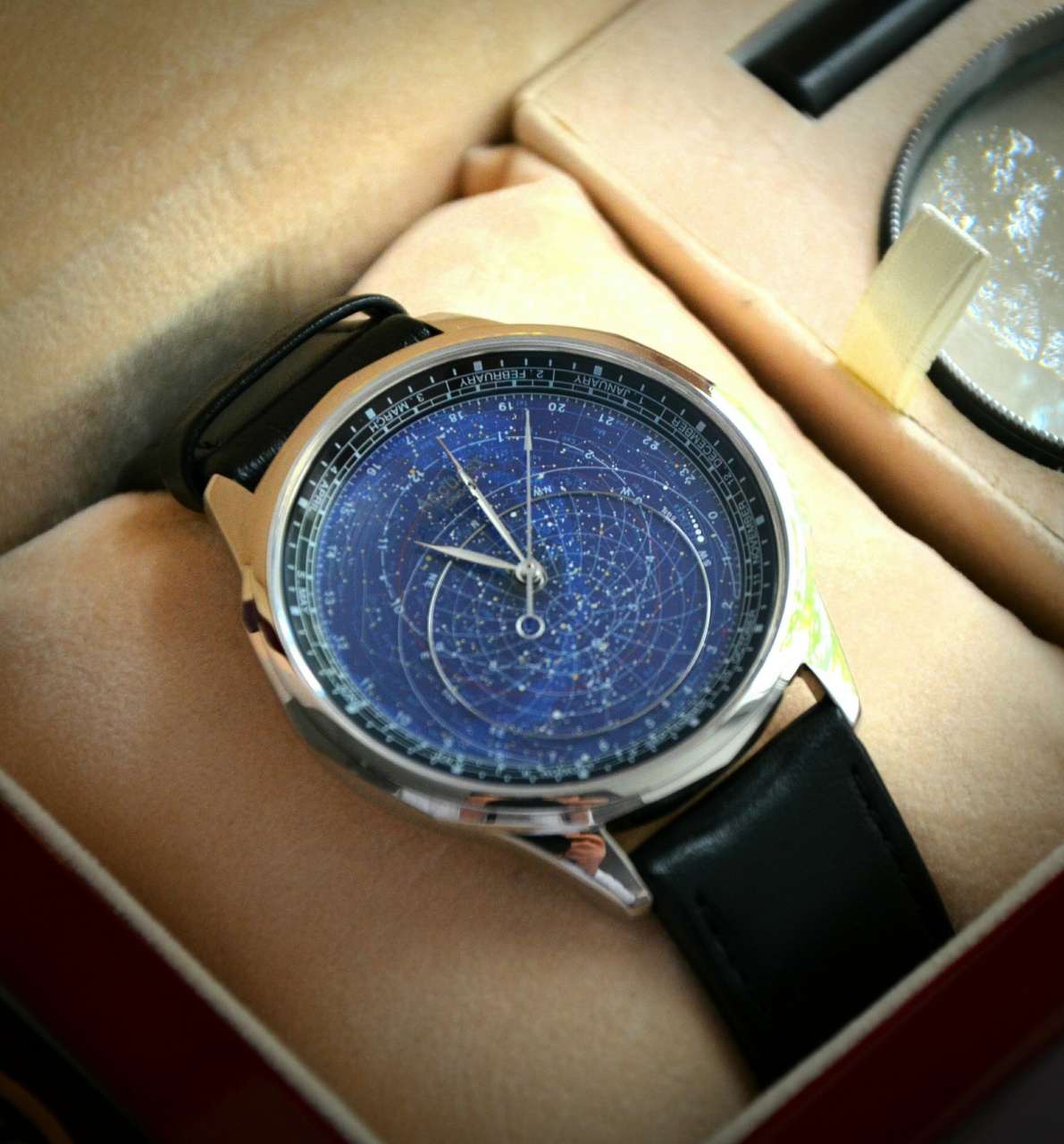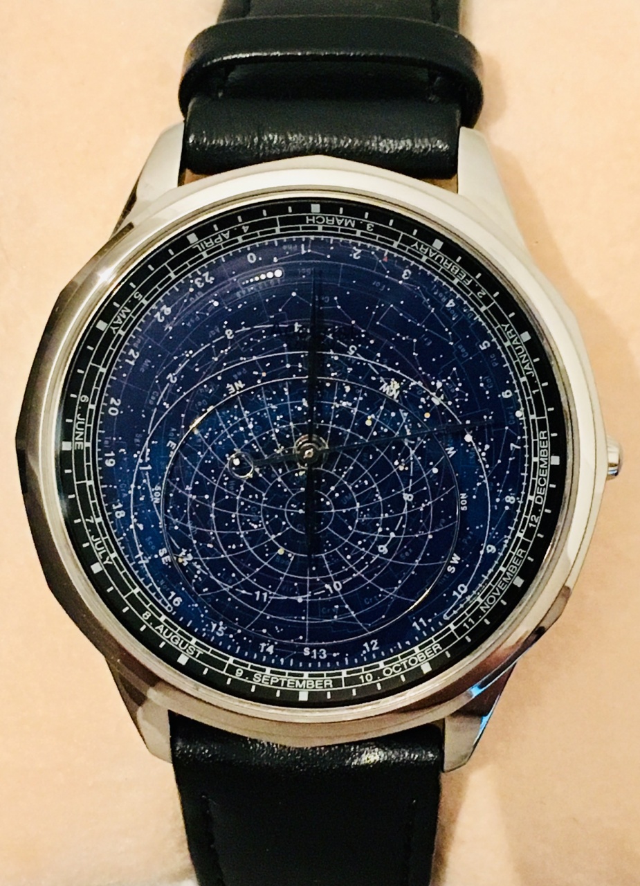 Celestial. Купленные в Англии в подарок, но так и лежат ... Об этих часах есть информация на форуме, кому интересно советую почитать. На циферблате представлены созвездия, с ходом суток циферблат крутится, и показывает созвездия над вашей головой в данный момент времени, как-то так. Кроме этого, вы сами можете крутить циферблат и просто рассматривать созвездия через лупу, которая идёт в комплекте. Часы новые, лимитированные, о чём свидетельствует номерной сертификат. Никаких нареканий к внешнему виду нет, вы и сами видите на фото, как и к технической работе часов, которую обеспечивает надежная японская Miyota. Ремешок кожаный, удобный, застёжка "бабочка".