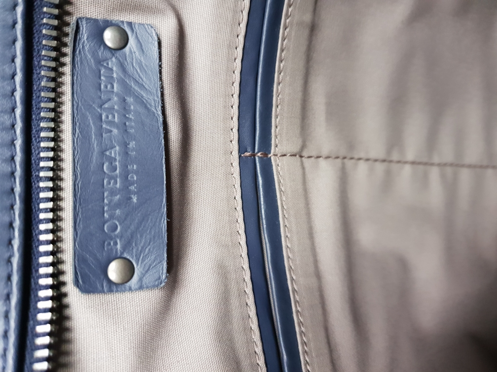 Темно-синий портфель с двумя ручками дополнен съемным плечевым ремнем. Модель выполнена в старинной технике плетения intrecciato из узких полос гладкой матовой кожи. В аксессуар поместятся бумаги формата А4, во внешний карман на молнии — планшет.