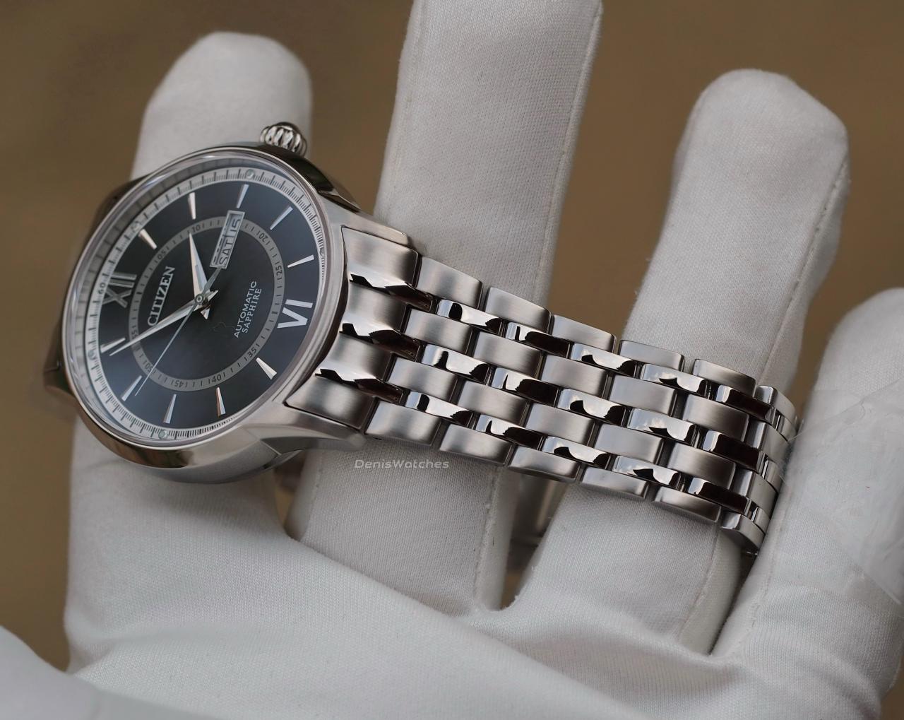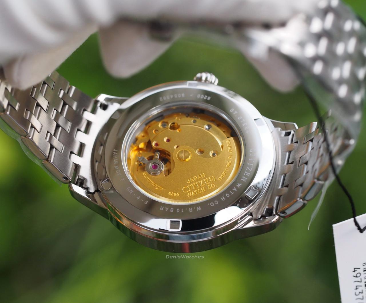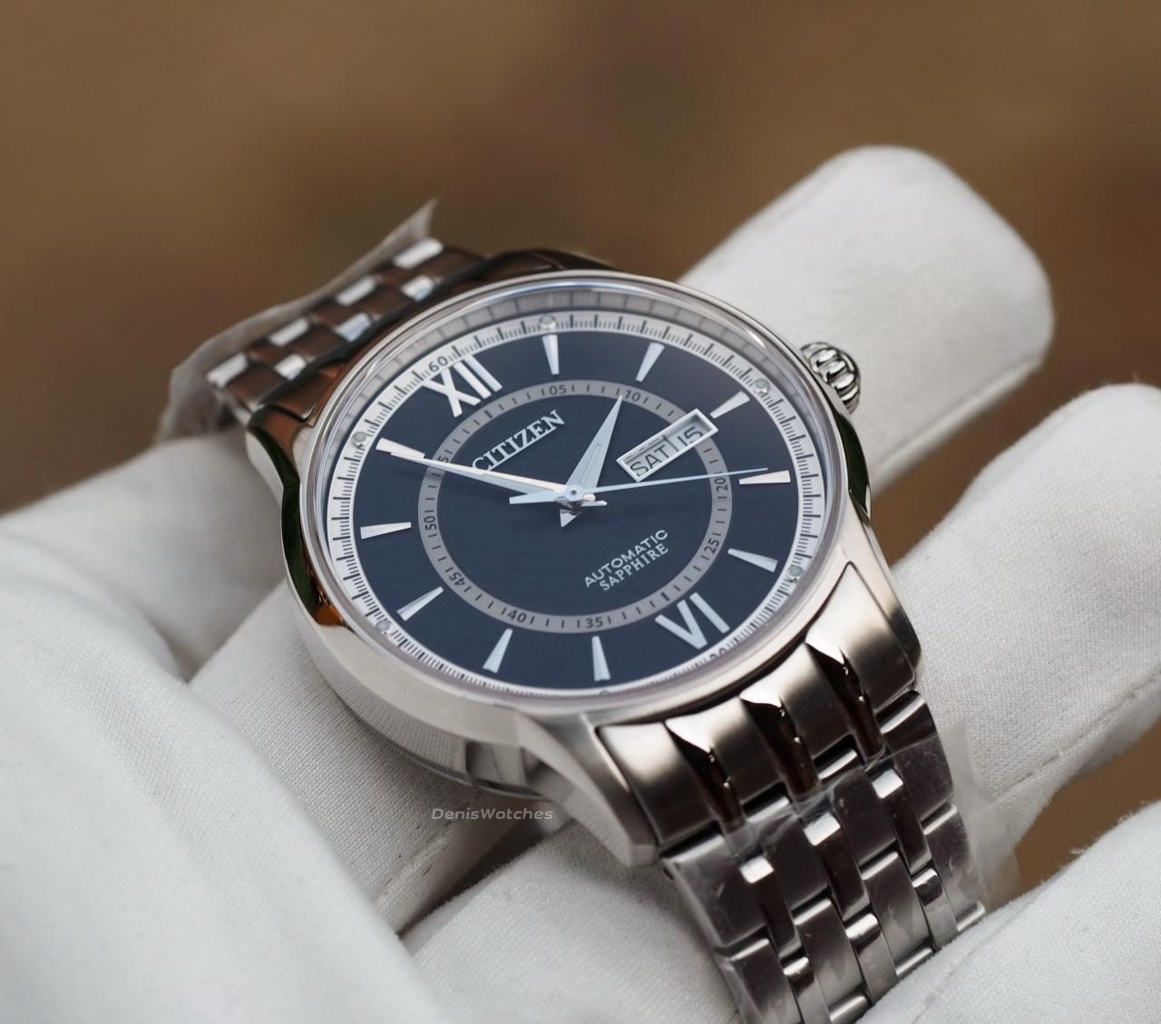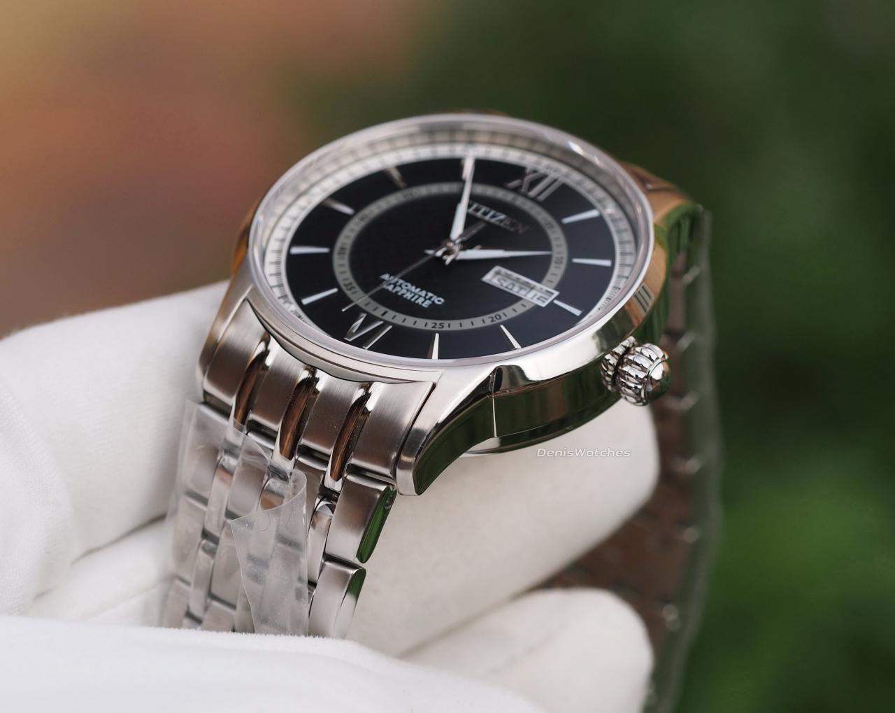 Черный гильёшированный циферблат, накладные металлические метки и лого Citizen