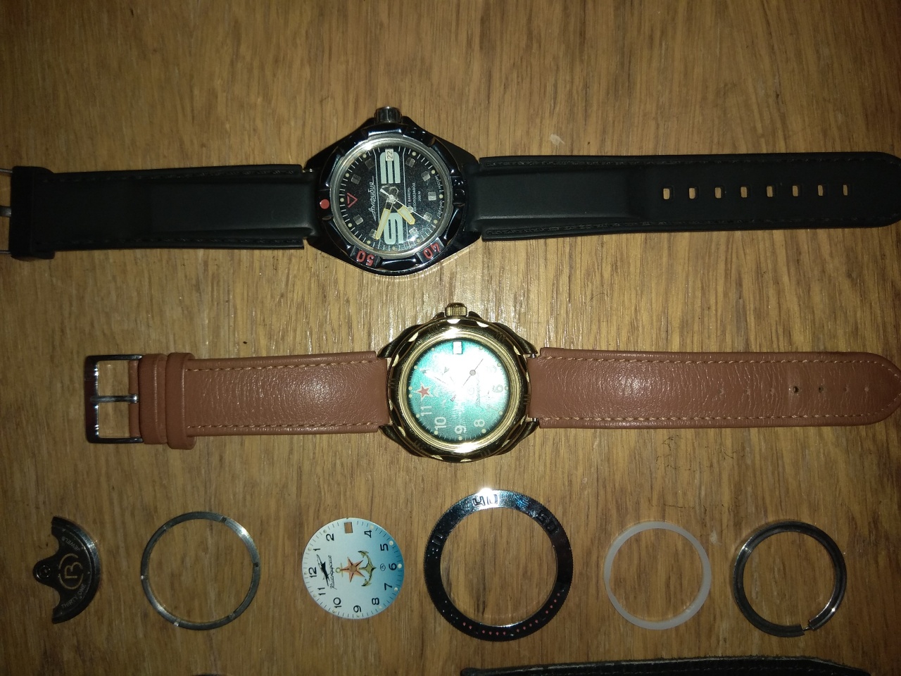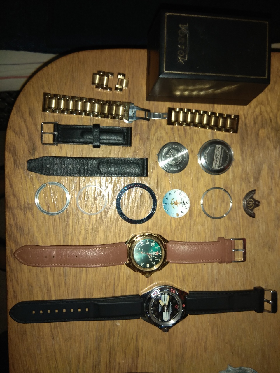 Обменяю на кварц одним лотом. Собирал себе часы из трех моделей. Это остатки. Почти все в идеале. механизмы в часах рабочие, браслет китайски без царапин не носился практически. Ремень оригинальный не использовался. Стрелы на Амфибии сделаны под заказ.