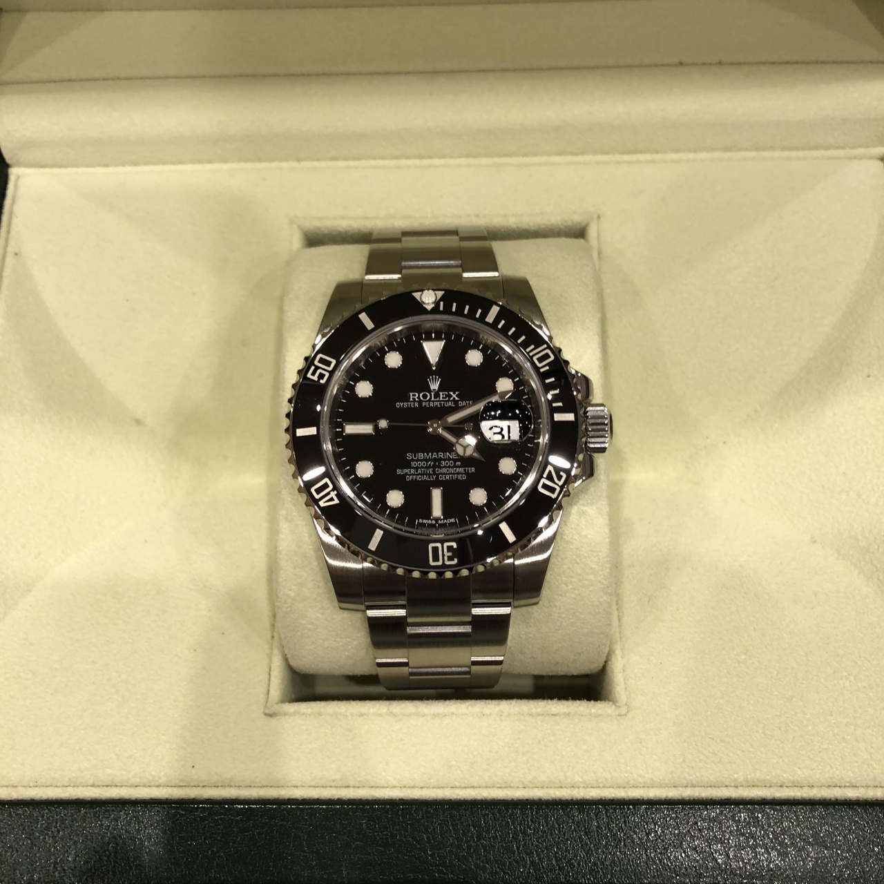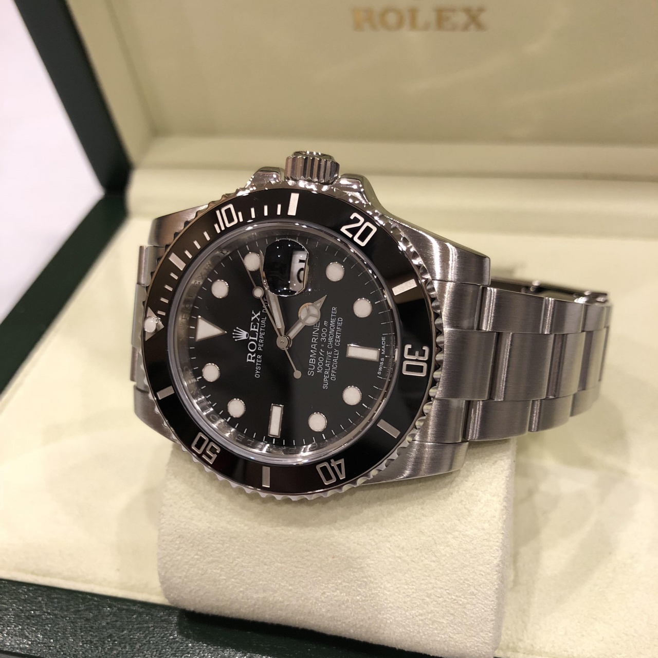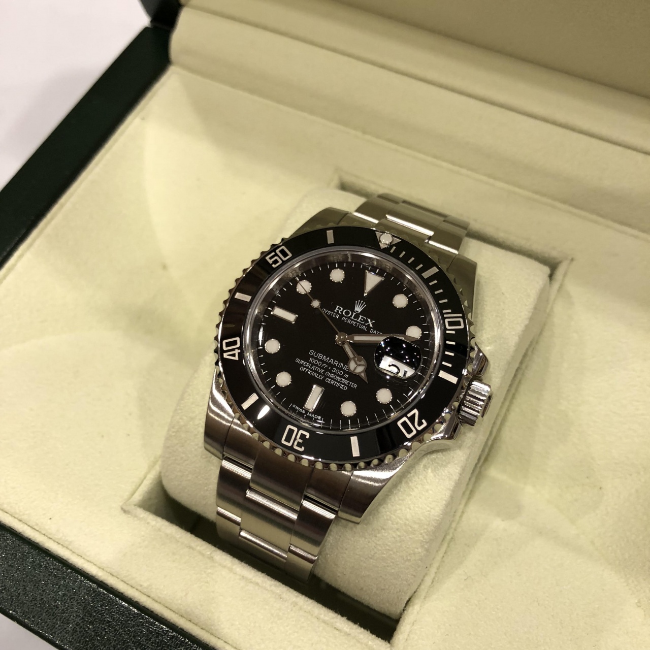 Rolex Submariner Date 116610LN - одна из самых популярных моделей швейцарской мануфактуры Ролекс. Благодаря великолепному корпусу Oyster, чёрному циферблату с крупными светящимися часовыми отметками, а также вращающемуся градуированному безелю Cerachrom и прочному браслету Oyster, новейшее поколение часов Submariner и Submariner Date возрождает традиции исторической модели, выпущенной в 1953 году. Компания Rolex производит часовые корпуса из нержавеющей стали 904L, которая используется в сфере высоких технологий, космической и химической промышленности, где требуется максимальная стойкость к коррозии. Суперсплав 904L отличается исключительной прочностью и превосходно поддается полировке. Сделанный из него корпус сохраняет первоначальную красоту даже в экстремальных условиях эксплуатации. Часы Rolex Submariner Date 116610LN-0001 оснащены мануфактурным механизмом Rolex калибра 3135, сертифицированным COSC. Запас хода часов Rolex Submariner Date 116610 составляет 48 часов, водонепроницаемость - 300 метров. Браслет оснащён застежкой безопасности Oysterlock с раскладывающейся пряжкой и системой удлинения Rolex Glidelock.