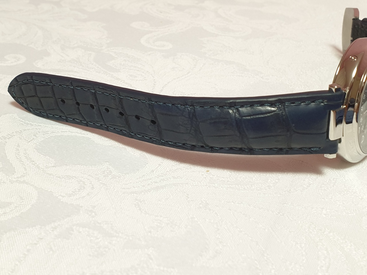 В КОМПЛЕКТЕ ЧАСЫ, КОРОБКА, ОРИГИНАЛЬНЫЙ РЕМЕНЬ В ХОРОШЕМ СОСТОЯНИИ + ЗАКАЗНОЙ ИЗ КОЖИ КРОКОДИЛА ТЕМНО-СИНЕГО ЦВЕТА
