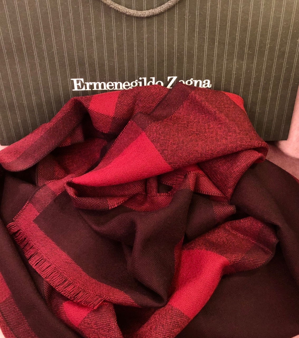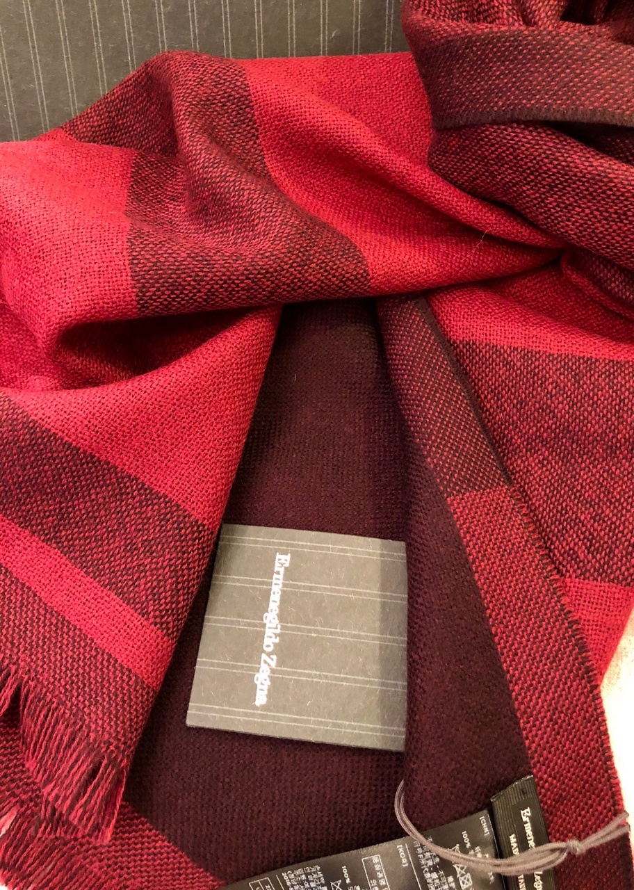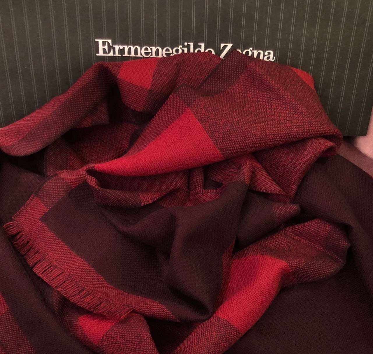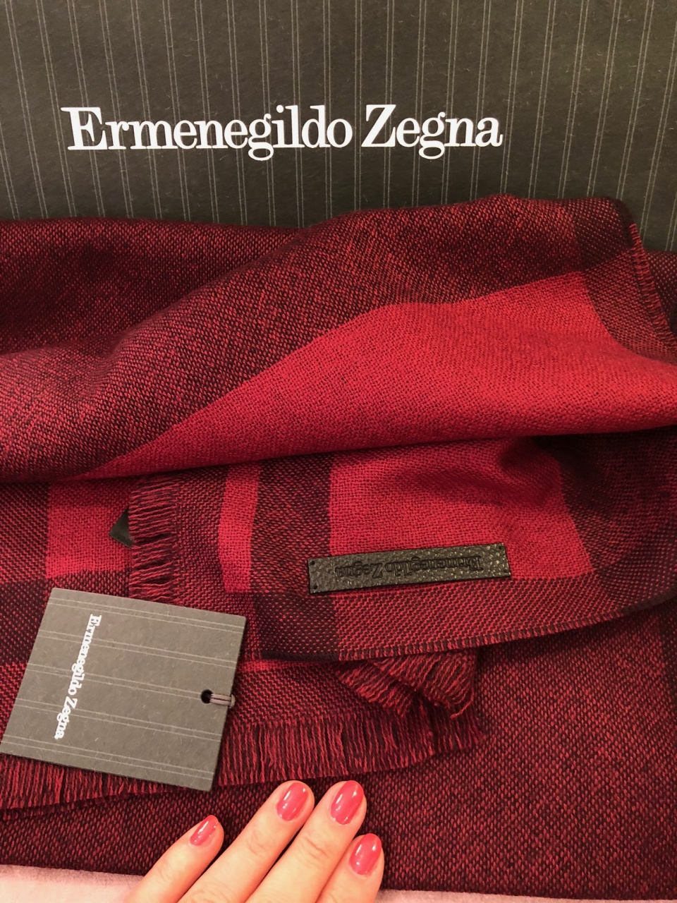 Шарф ⭐️ Ermenegildo Zegna ⭐️ Ало-красный с винными полосами, 100% шерсть. Новый, со всей упаковкой