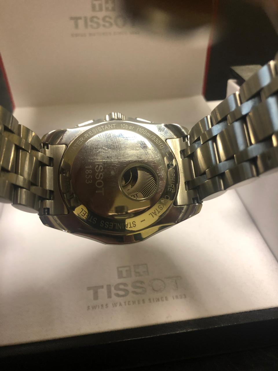 TISSOT T035.627.11.051.00 T-Trend Couturier Automatic - мужские механические наручные часы. Корпус этих часов крупного размера (43 мм) и выполнен из нержавеющей стали L316 металлического цвета. Модель TISSOT T035.627.11.051.00 T-Trend Couturier Automatic имеет устойчивое к царапинам сапфировое стекло, браслет из нержавающей стали металлического цвета, черный циферблат. Калибр механизма: ETA C01.211. Класс водозащиты: 100 м / 10 АТМ (разрешается плавание и ныряние без акваланга). Дополнительные функции и особенности: отображение числа, хронограф (секундомер), тахиметр.