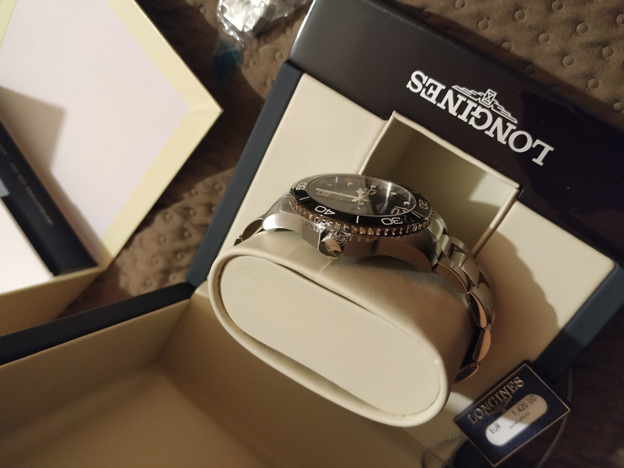Продам новую модель гидроконквеста. Керамический безель. Ref. L3.782.4.56.6. Часы носил 4 дня, понял что большеваты. Состояние новых часов, только пленки снял и два звена. Звенья, разумеется в комплекте. Комплект полный, коробка, доки, гарантия. Цвет черный, диаметр 43 мм. Часы в спб. Могу отправить по 100 процентной предоплате. Могу поменять на такие же новые в размере 41мм в синем или черном цвете с моей доплатой. Иного обмена нет, хочу только гидру с керамикой и только новую.