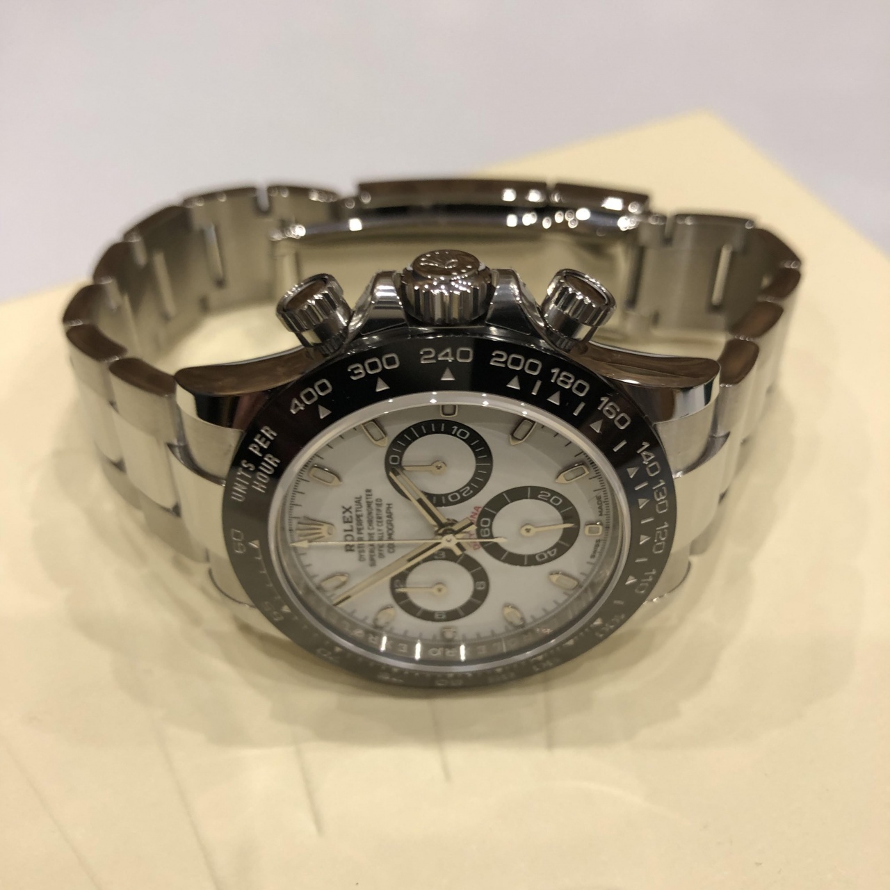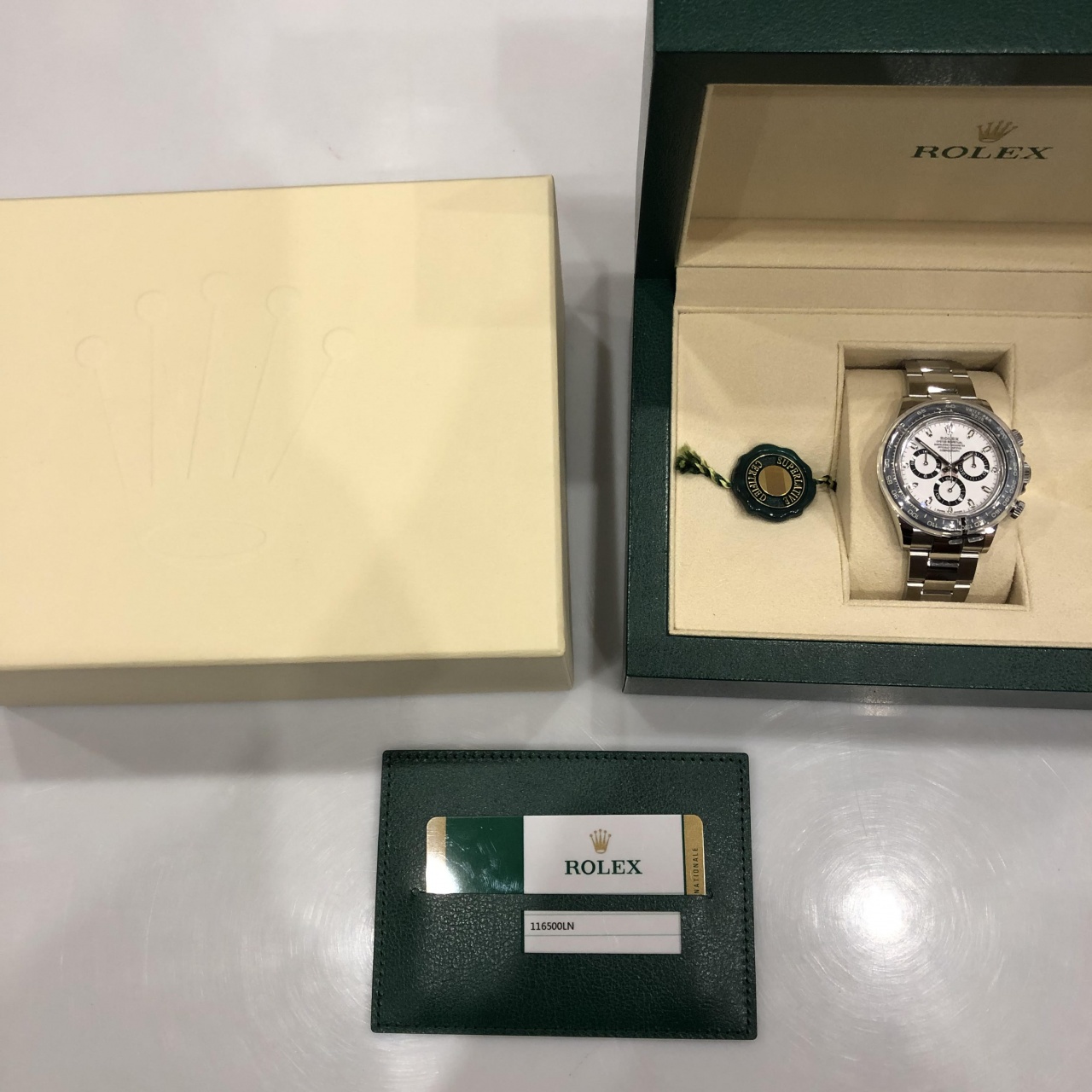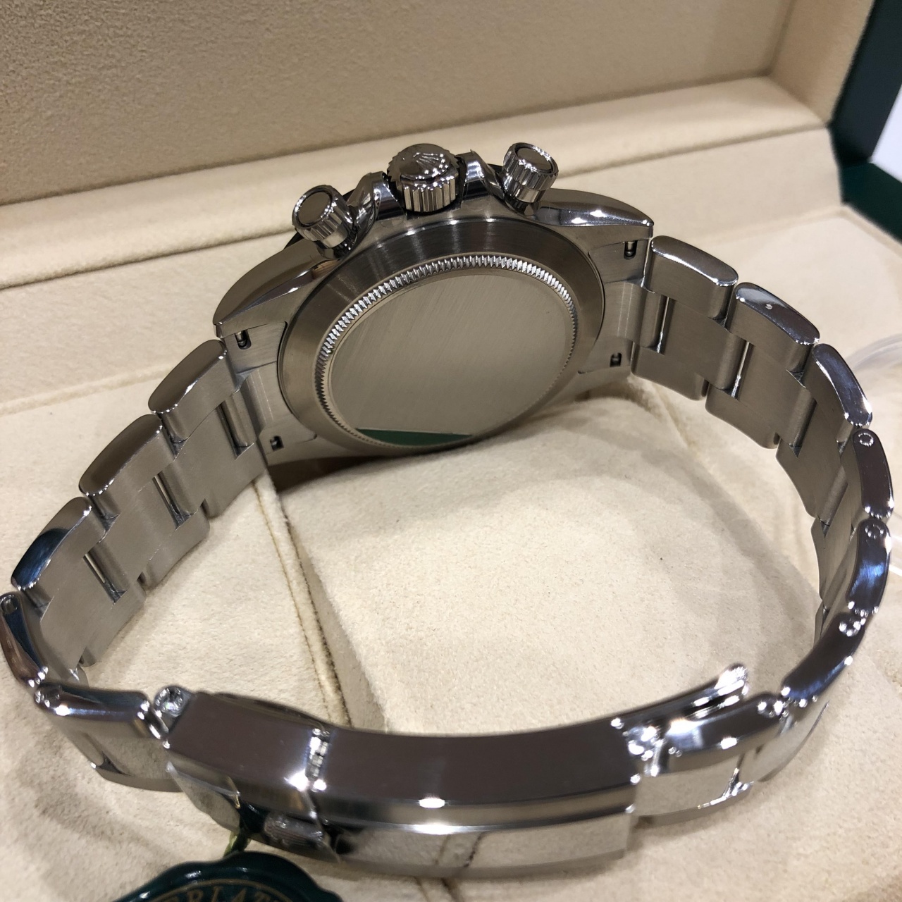 Часы Rolex Cosmograph Daytona 116500LN были представлены на часовой выставке Baselworld в 2016 году. Обновленная модель получила керамический безель и сразу же завоевала огромную популярность. Хронометр Ролекс 116500LN в 40-миллиметровом корпусе из нержавеющей стали 904L с белым циферблатом дополнены браслетом Oysterlock из нержавеющей стали. На циферблате отображаются при помощи центральных стрелок часы, минуты и секундный счетчик хронографа. Три симметричных суб-циферблата показывают минуты и часы хронографа, а так же секунды текущего времени. На керамическом безеле расположилась тахиметрическая шкала. Механизм - мануфактурный калибр Rolex Perpetual 4130 с запатентованной спиралью баланса Parachrom, гарантирующую надежную защиту от сотрясений, температурных изменений и магнитных полей. Запас хода - 72 часа.