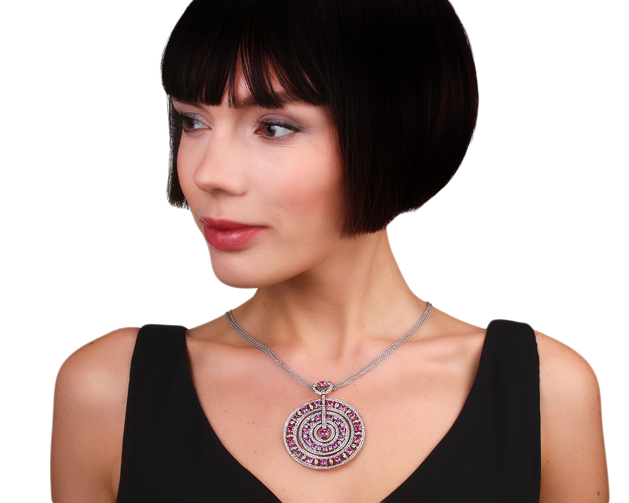 Золотая подвеска с розовыми сапфирами и бриллиантами 4.32ct