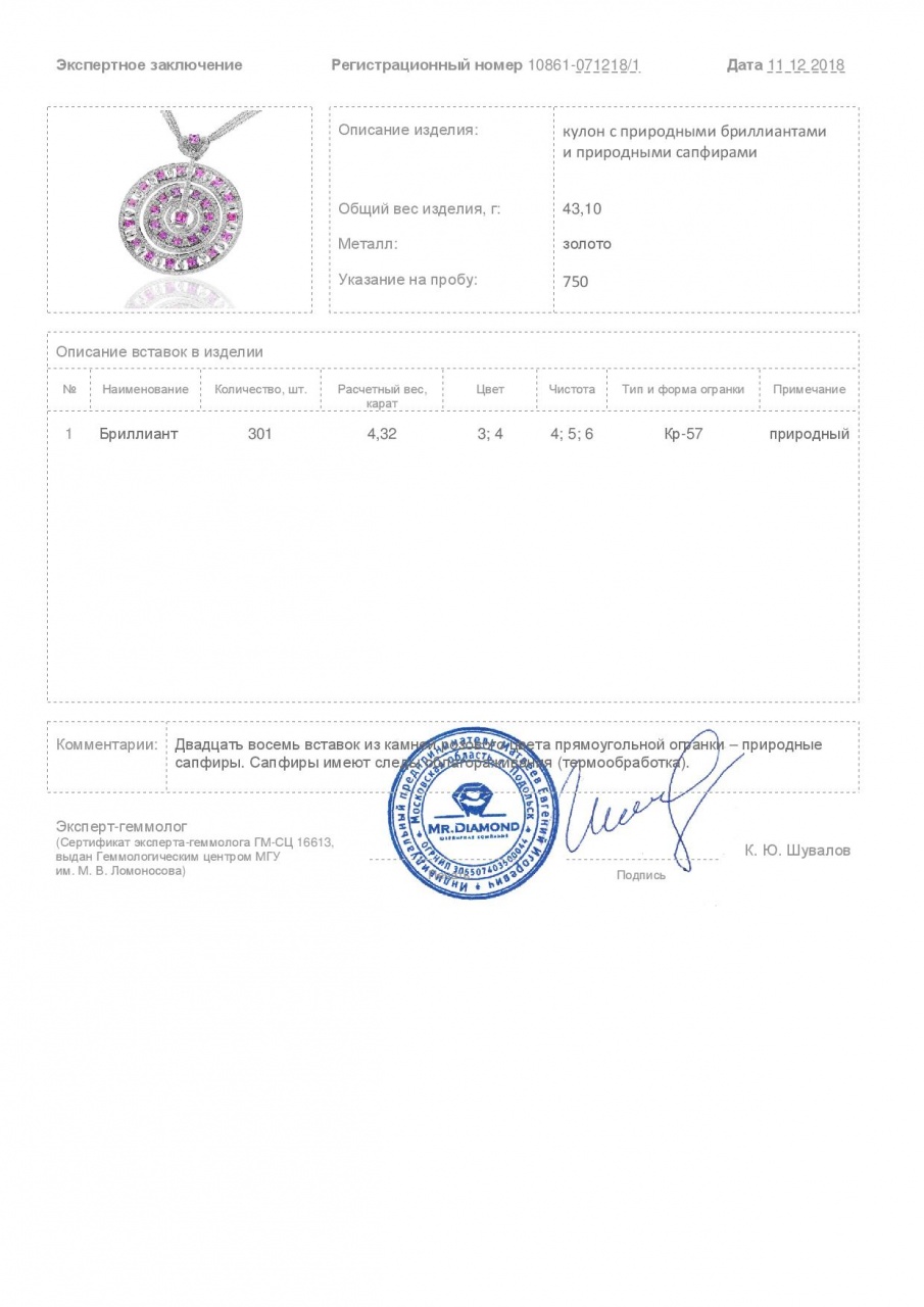 | подвеска с бриллиантами, подвеска с сапфирами |