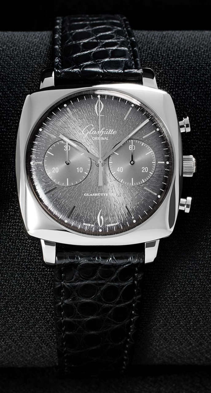 Около 4 лет назад мануфактура Glashütte Original выпустила в рамках коллекции Sixties серию моделей с яркими циферблатами. Распродались они быстро и теперь на смену круглым цветастым трехстрелочникам пришли хронографы в корпусах-подушках.
