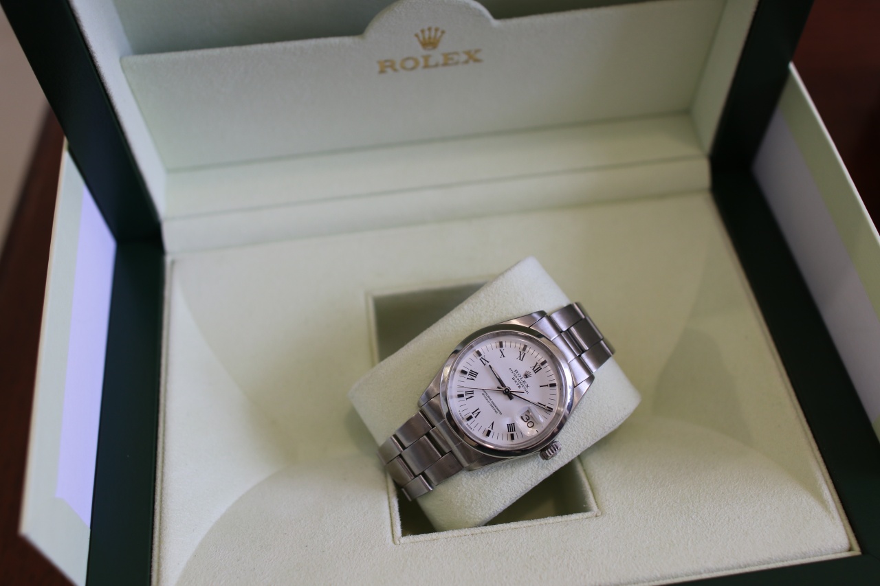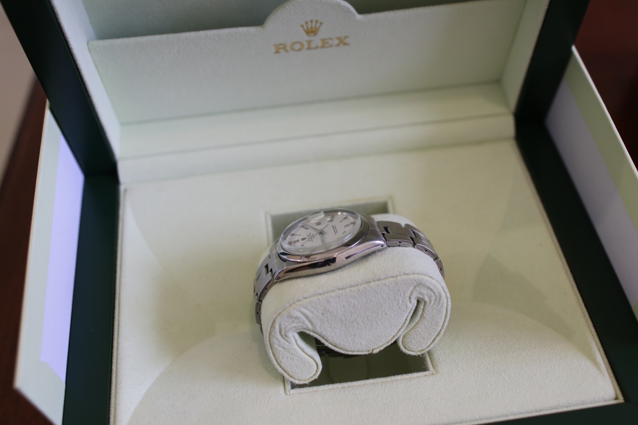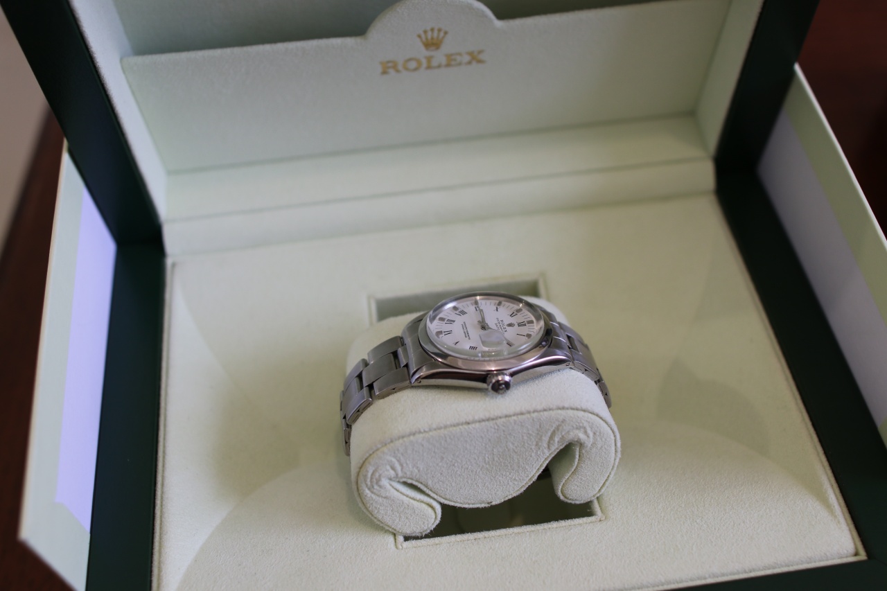 Rolex Oyster Perpetual Date (Белый циферблат, Браслет, Римские цифры)