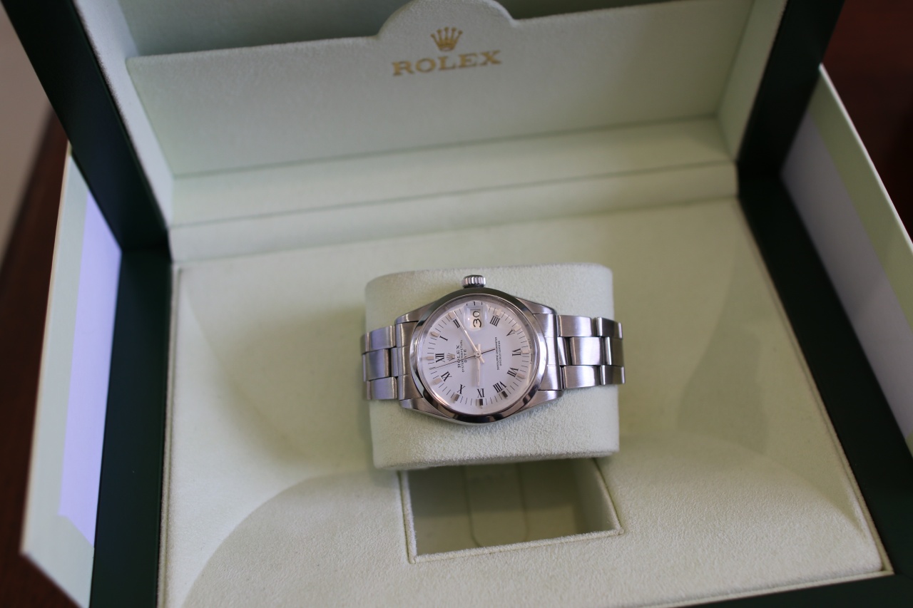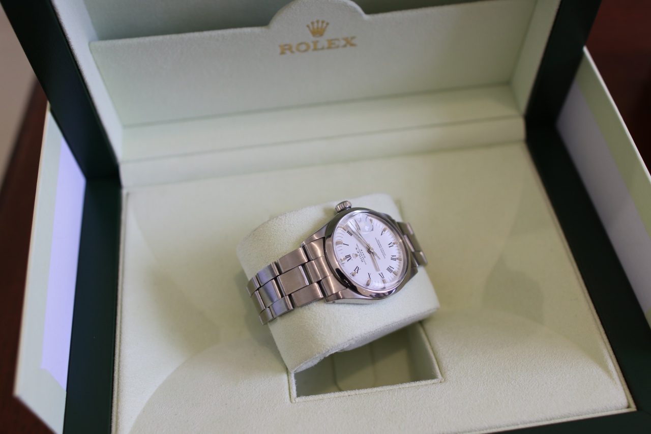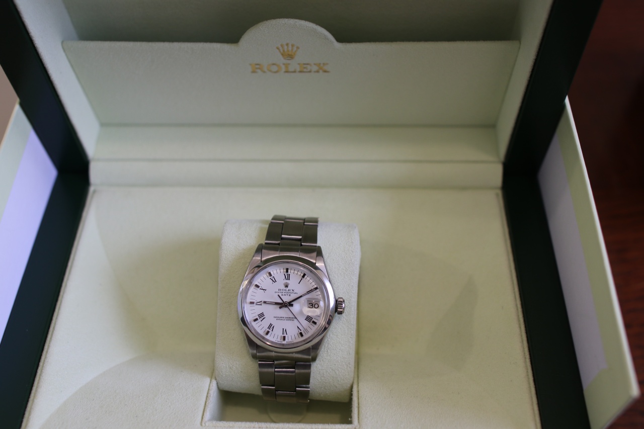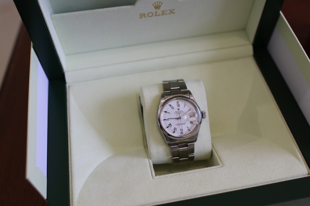 Rolex Oyster Perpetual Date (Белый циферблат, Браслет, Римские цифры)