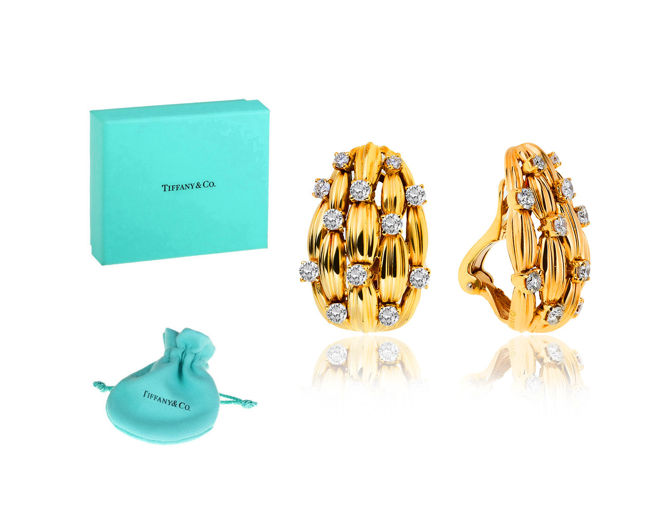 Золотые серьги с бриллиантами 2.00ct Tiffany&Co Signature