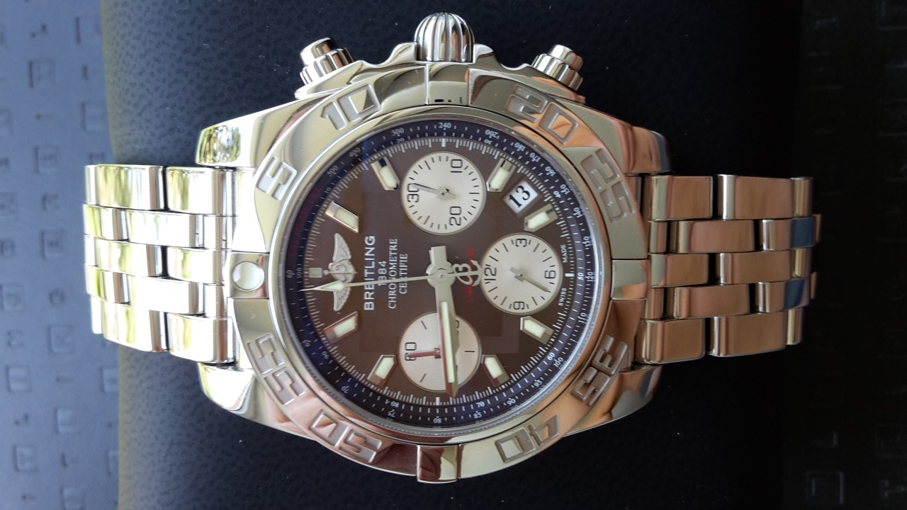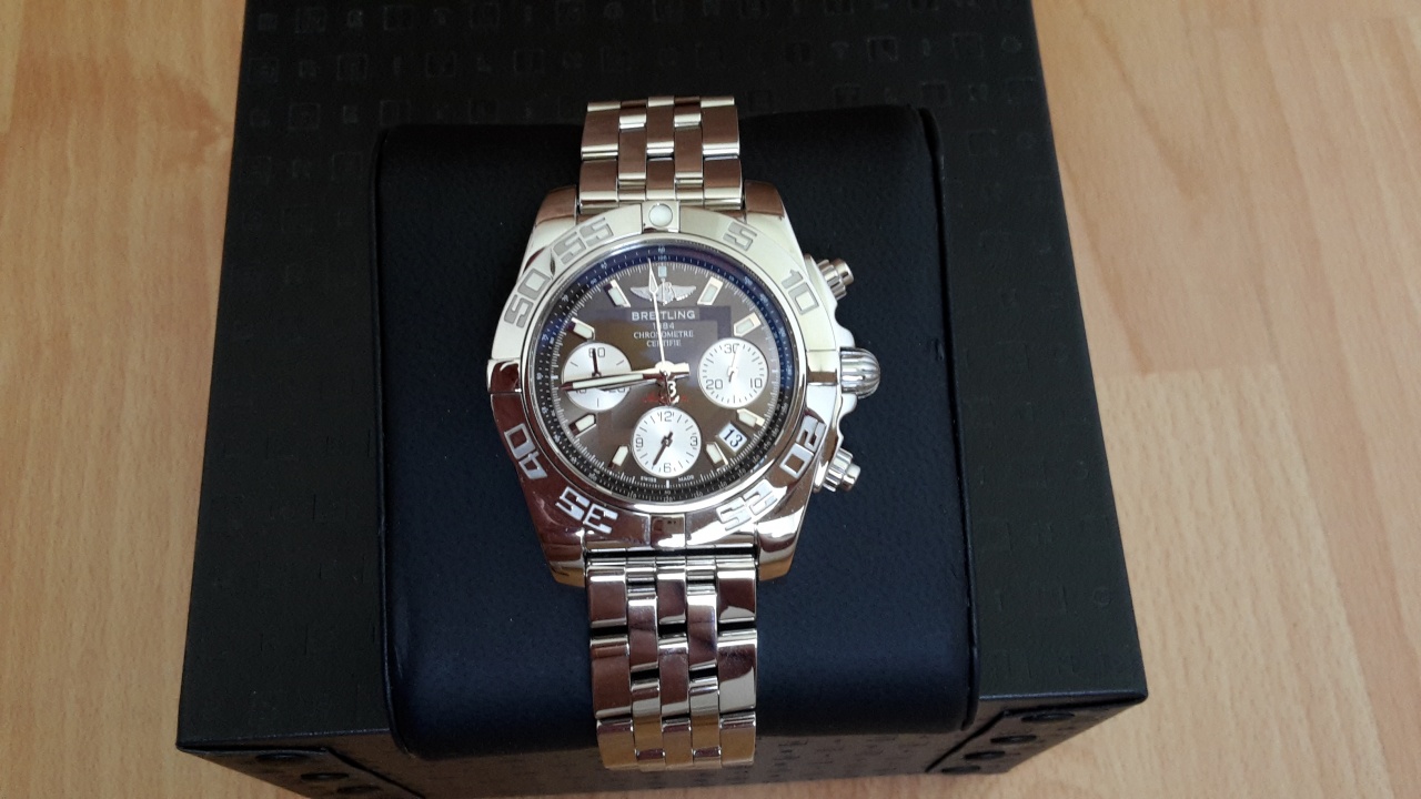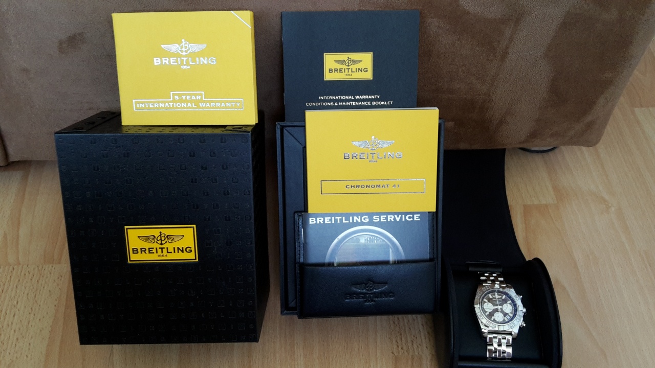 Я продаю мои Breitling Chronomat 41, которые я купил в Германии в 2014 году. Часы не носились, состояние отличное, как новые. На застежке еше пленка. Так как это мануфактурные часы от Breitling то гарантия на них состовляет 5 лет, т.е еще до ноября 2019 года.