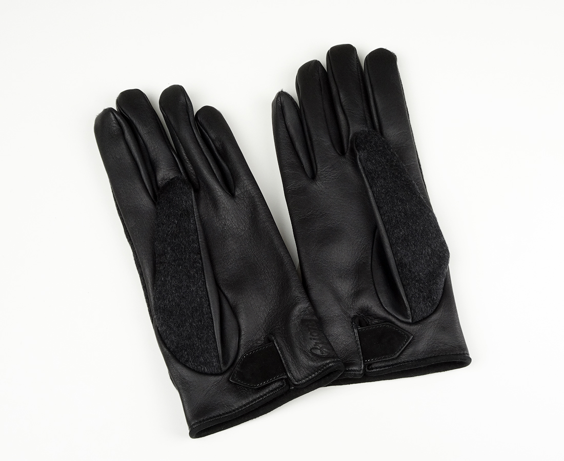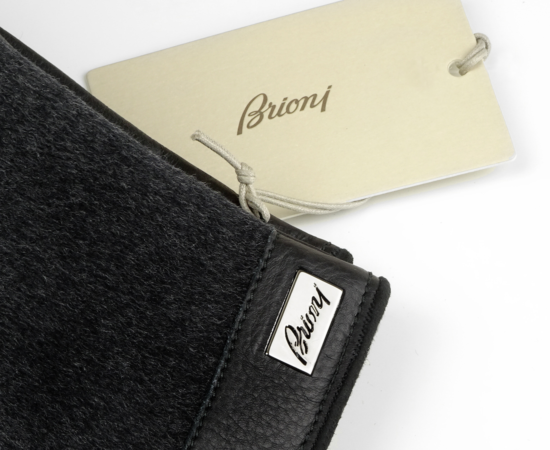На каждой из перчаток размещена металлическая плашка с лого Brioni. На правой перчатке логотип Brioni дополнительно выполнен тиснением по коже.