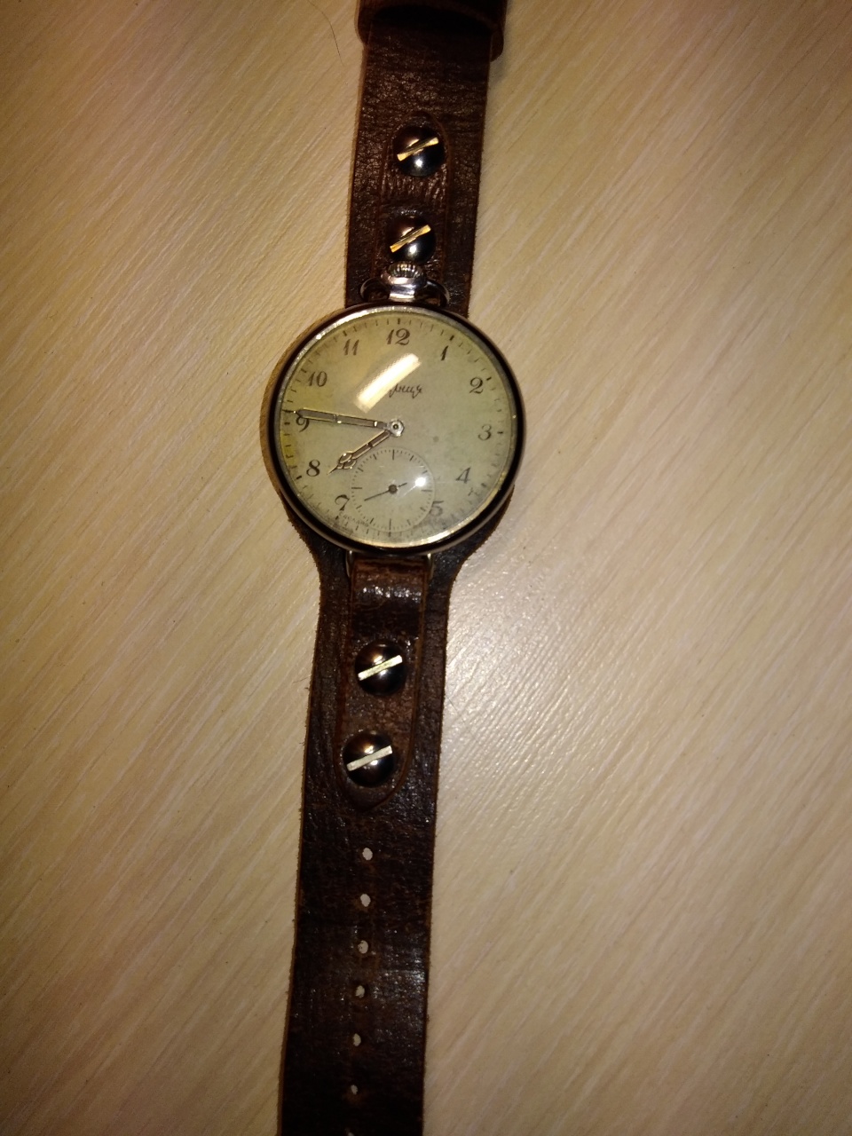 Продаю прекрасную Молнию, калибр 3601 1954 года. Часы отреставрированы и обслужены. Ход часов без замечаний. Часы идут на ремешке пошитом из солдатского ремня 70 годов. Циферблат не облезлый, а специально таким образом восстановлен. Часы для серьезного отношения, калибр 3601 требует того. Продаю с целью приобретения Молнии на ЧК 6 1948 года.